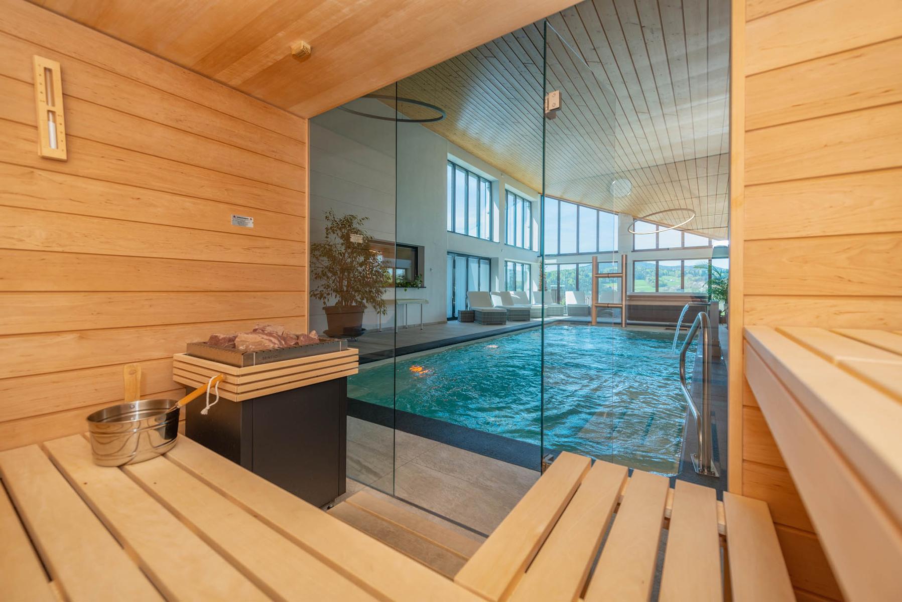 Das Schwimmbad mit Sauna und Dampfbad für zwei Personen 2 Stunden 140,00 €.
