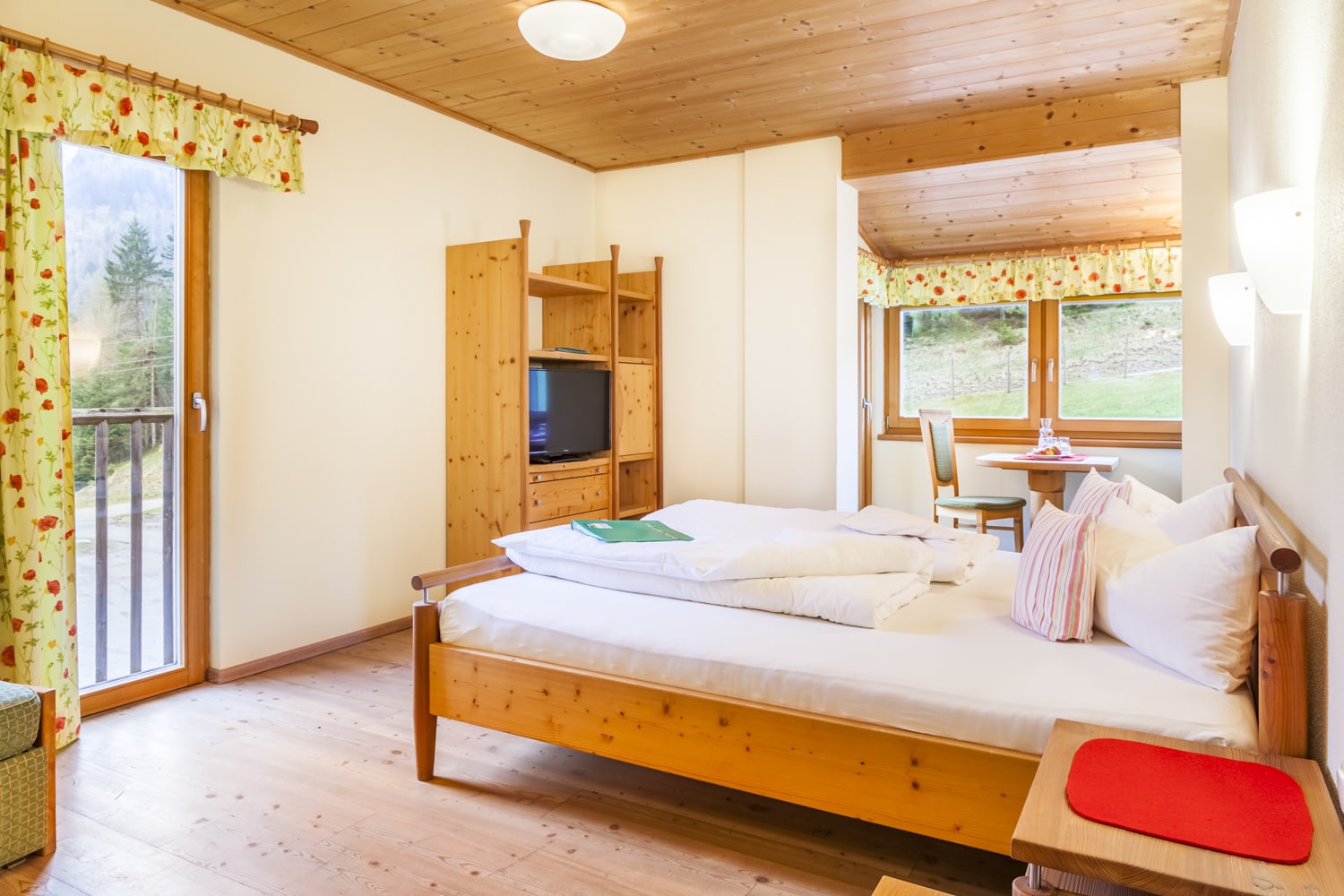 Helles Doppelzimmer mit freundlichen Vollholzmöbeln, Balkon und Wintergarten – ideal zum Entspannen im Salzburger Land. Das Zimmer ist mit W-Lan, Fernseher, Dusche und WC ausgestattet. Eine Ausziehcouch bietet zusätzlichen Platz für Kinder oder zum Relaxen.