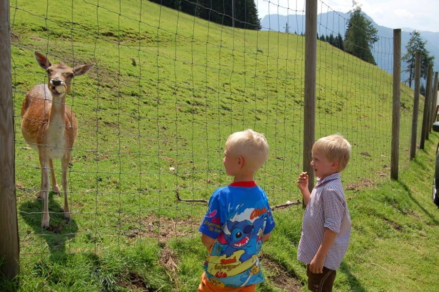 Den biologisch geführten Hof können Sie gerne erkunden und sich mit unseren Ziegen, dem Esel, Katzen, Kühen oder Schweinen anfreunden. Natürlich ist es immer spannend unser Damwild im Gehege zu beobachten.