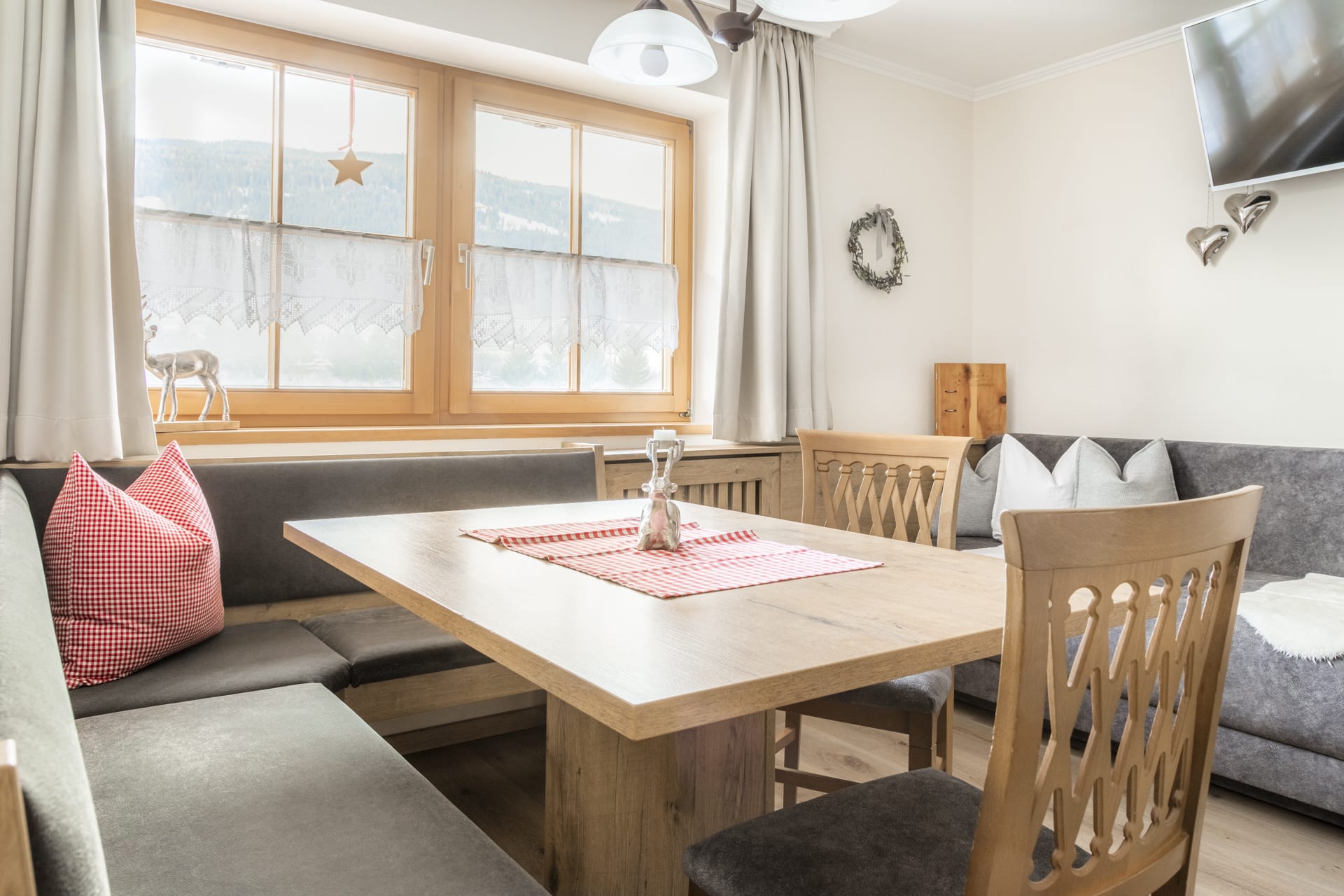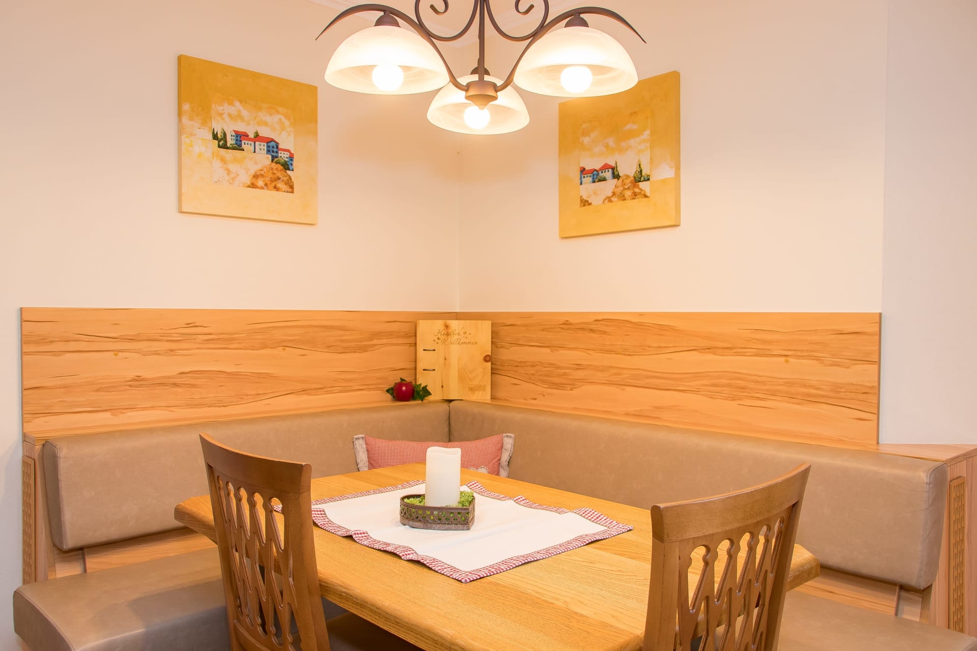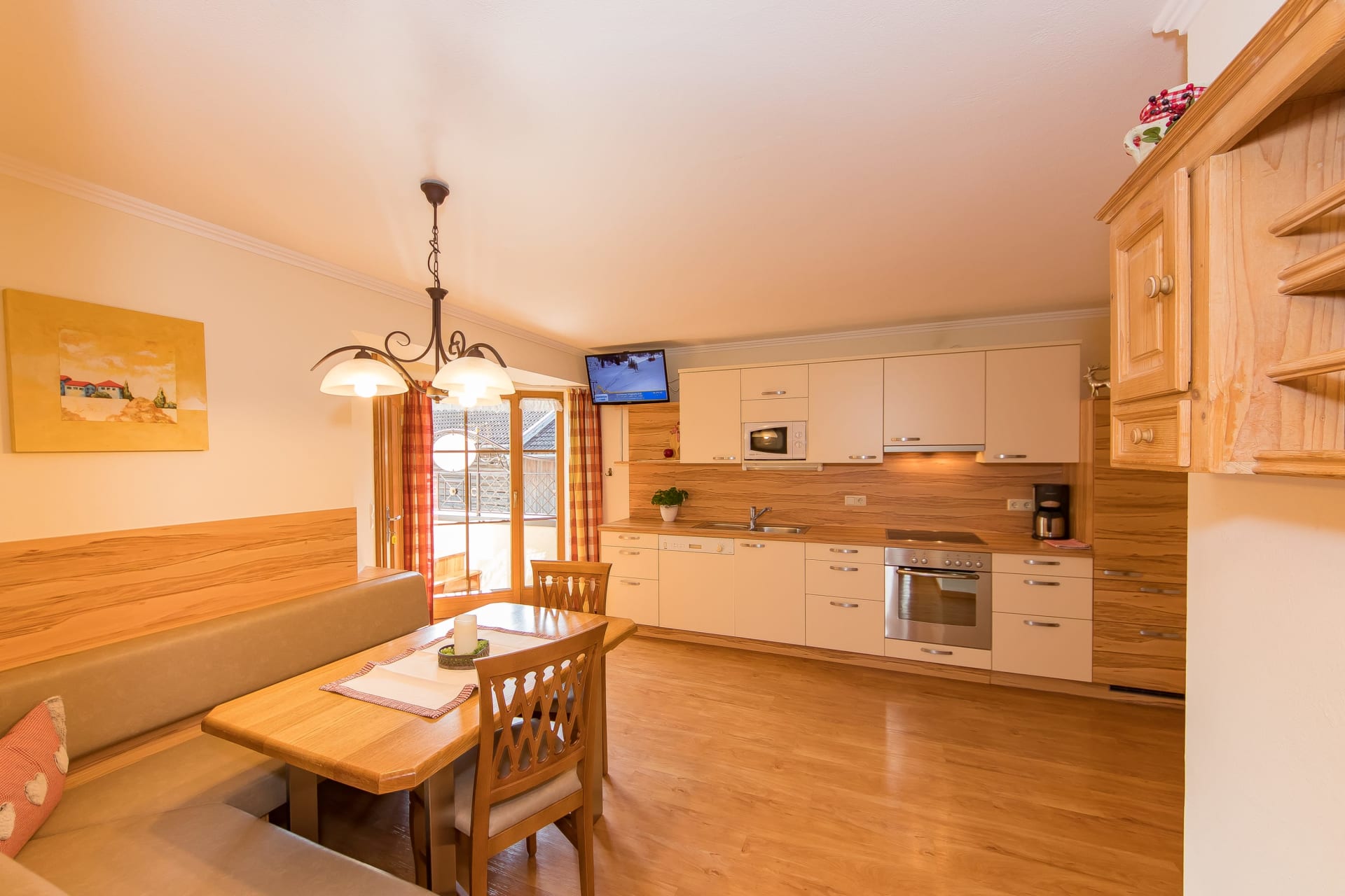 Das Appartment Dachtein ist gediegen und geschmackvoll ausgestattet und verfügt über eine komplett NEU ausgestattete Küche im Landhausstil mit Backofen, Geschirrspüler, Mikrowelle und Kühlschrank, eine gemütliche Sitzecke, Couch sowie Kabel-TV. Das Zimmer ist mit gemütlichen Vollholzmöbeln ausgestattet.