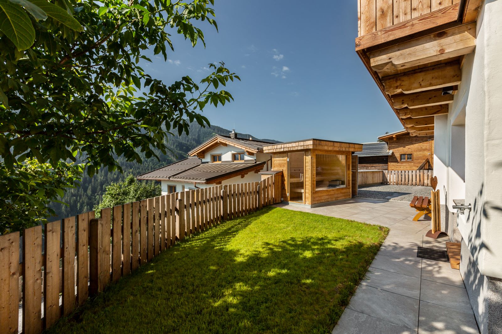 Ein Highlight ist die Saunahütte auf der Terrasse mit herrlichem Panoramablick. W-LAN ist ebenfalls vorhanden.