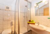 Ausstattung Zimmer 1: Doppelbett mit Ausziehcouch und eigenem Badezimmer