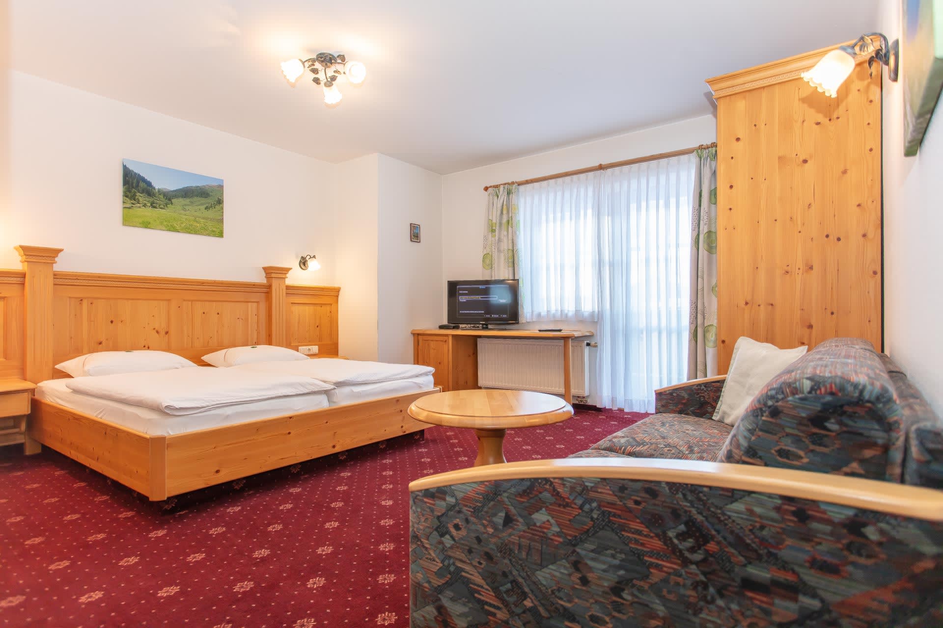 Ihre Urlaubsstimmung können Sie in unseren großzügigen und komfortablen Zimmern und Ferienwohnungen genießen. Die Ferienwohnungen sind alle mit 2 Schlafzimmern, einen gemütlichen Wohnraum (20m²), Vorraum, Bad mit Doppelwaschbecken und WC exra ausgeführt. Die Einrichtungen wurden alle aus heimischen Fichtenholz gefertigt. Von den breiten Balkonen aus können Sie die herrliche Aussicht bis zum Gletscher genießen. Im gemütlichen Aufenthaltsraum mit Videorecorder, Sat-TV, haben wir unsere Familienchronik aufliegen, in der Sie sehr gerne schmökern können. Für unsere Appartementgäste können wir täglich einen Brötchenservice anbieten. Für die Verpflegung können Sie Produkte wie Milch, Brot, Marmelade von uns bekommen. Somit steht einem wohlverdienten, erholsamen Urlaub nichts mehr im Wege.