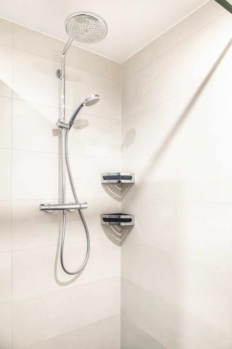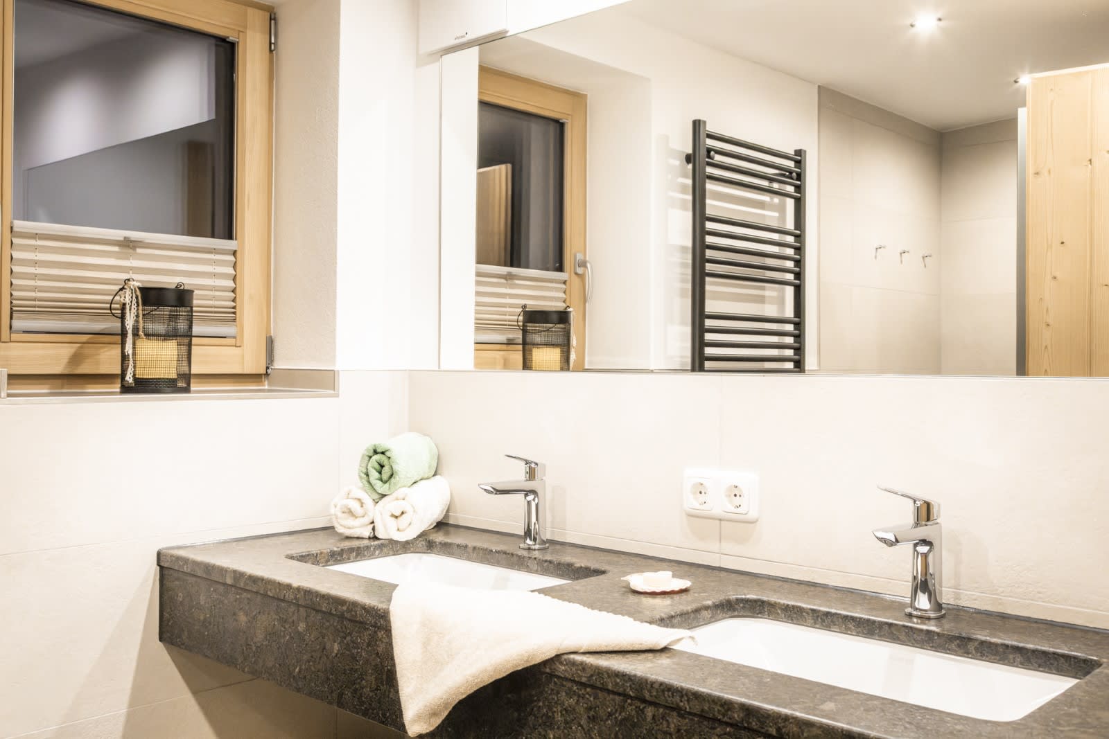 • Badezimmer mit Regendusche und Doppelwaschbecken