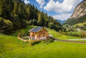 Das Landhaus Almleben liegt unmittelbar am Ortsanfang von Hüttschlag auf der Sonnenseite des Tals. Unsere Gäste genießen die Sonne also auch am Abend bei einem gemütlichen Getränk im Garten.