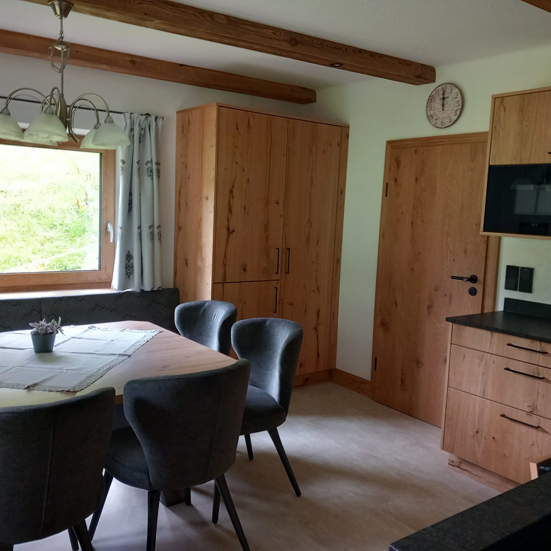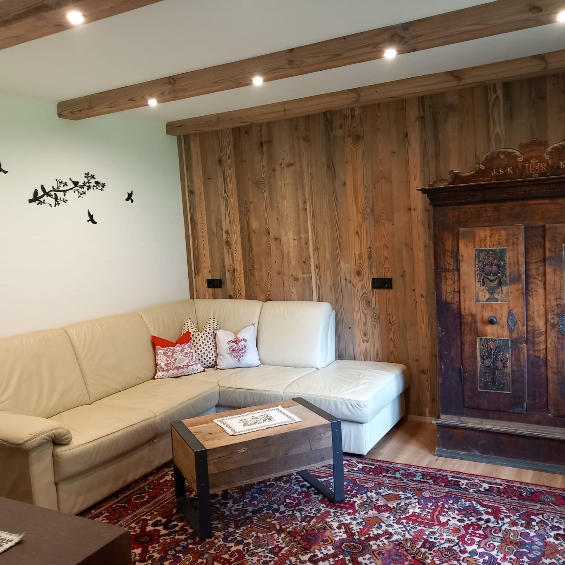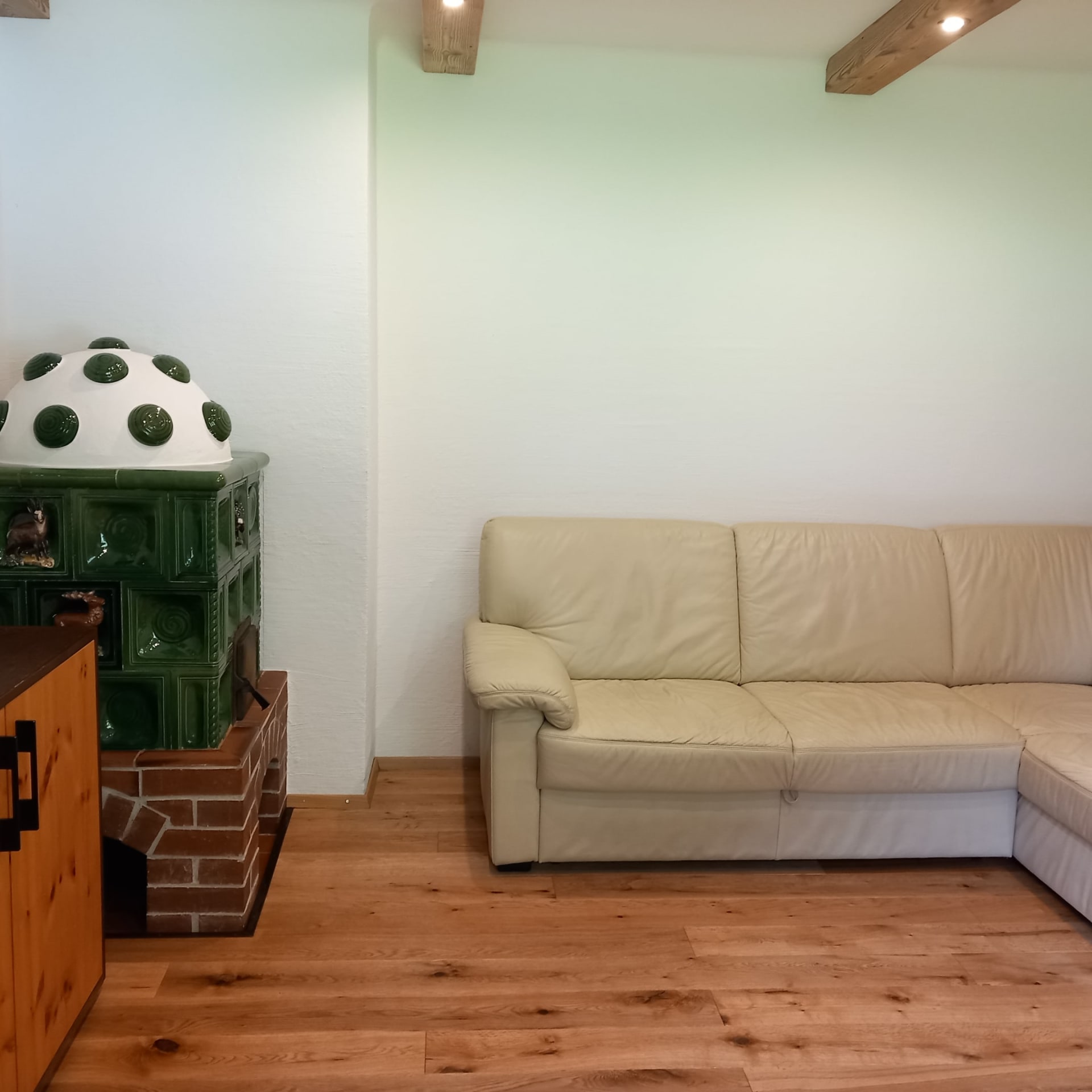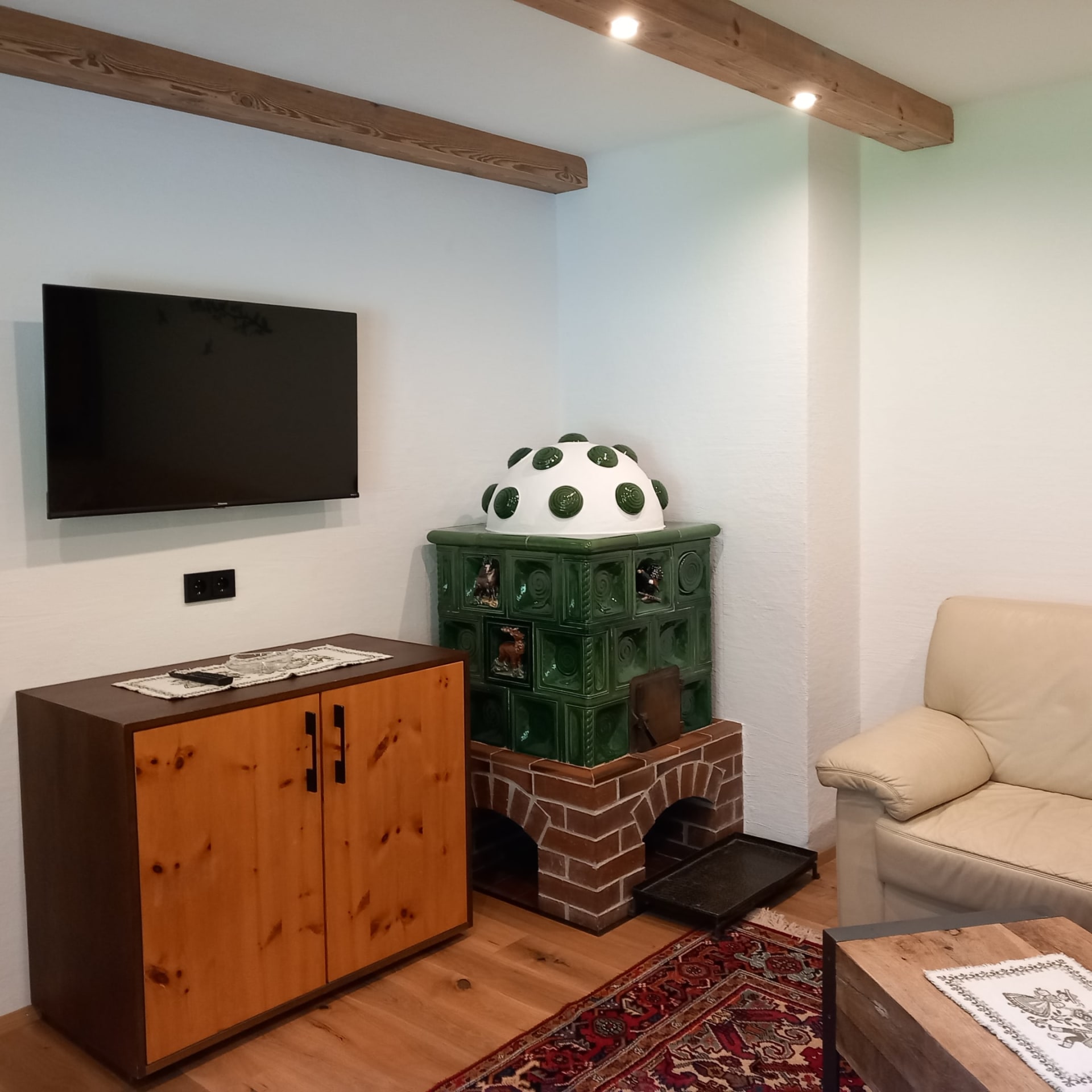 Das Ferienhaus wurde komplett neu renoviert, wobei wir auch einige Erbstücke wieder mit eingebaut haben. Der Kachelofen im Wohnzimmer bleibt erhalten genauso wie ein paar Kästen die schon über hundert Jahre alt sind und wieder im neuen Glanz erstrahlen. Auch die Fasade mit ihren Schnitzerein wurde vorischtig renoviert.
