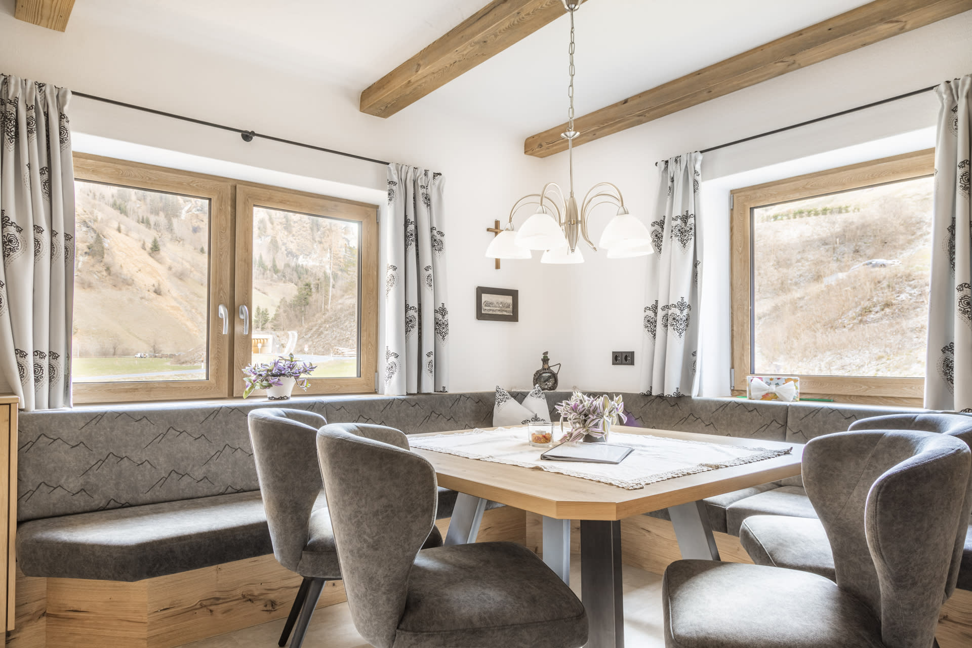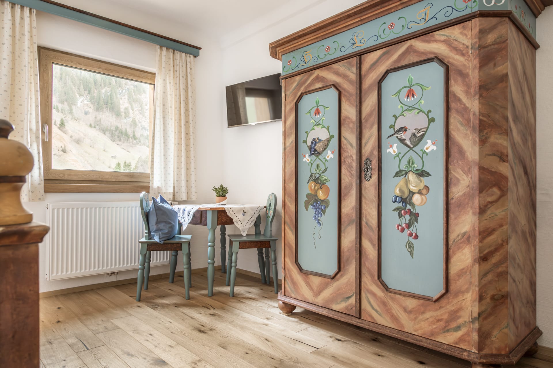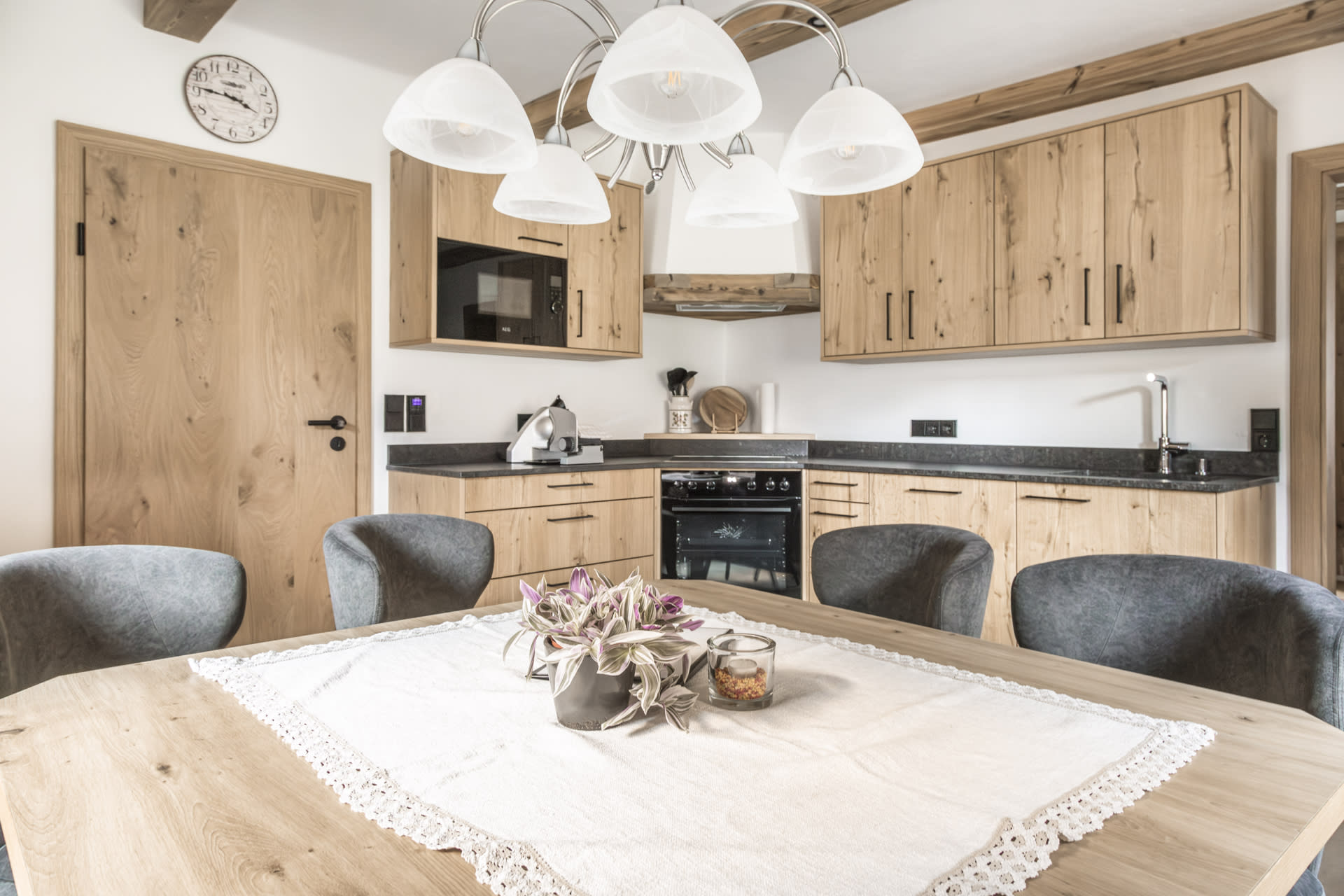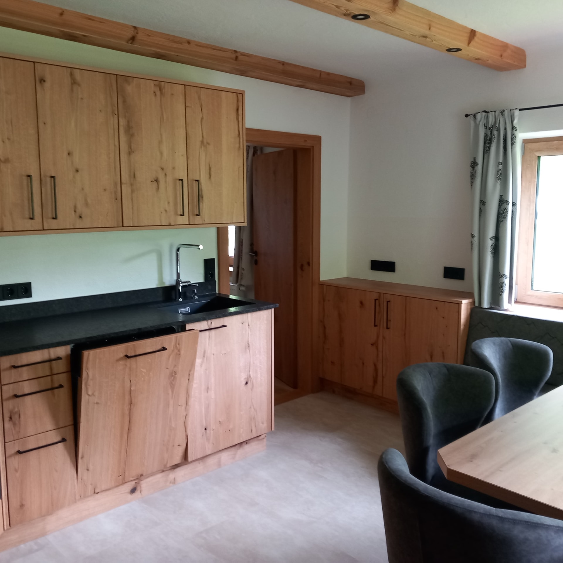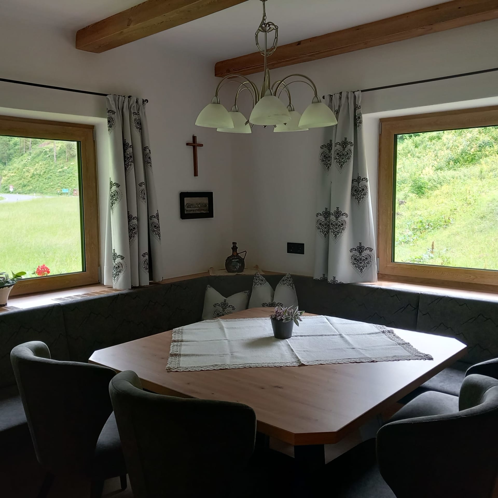 Das Ferienhaus wurde komplett neu renoviert, wobei wir auch einige Erbstücke wieder mit eingebaut haben. Der Kachelofen im Wohnzimmer bleibt erhalten genauso wie ein paar Kästen die schon über hundert Jahre alt sind und wieder im neuen Glanz erstrahlen. Auch die Fasade mit ihren Schnitzerein wurde vorischtig renoviert.