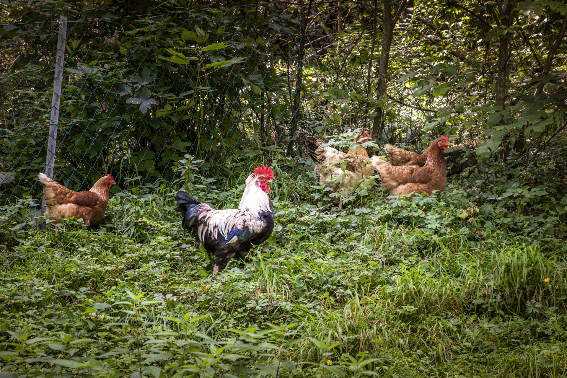 Oberhalb des Hauses sind 20 Freilandhühner samt Hahn. Ihr werdet am Morgen also vielleicht von unserem Hahn geweckt, könnt euch aber auch Frühstückseier bestellen.