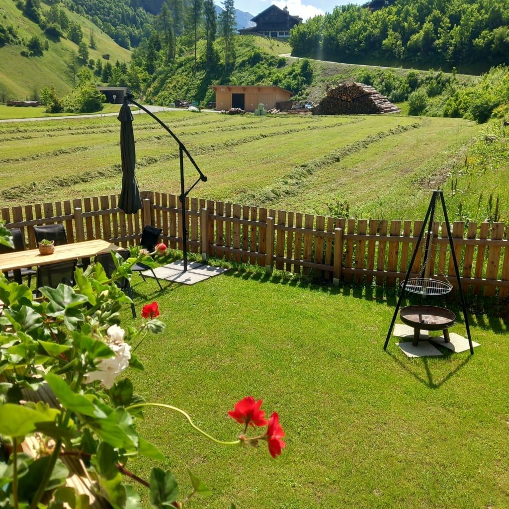 Im Garten könnt ihr über der Feuerstelle grillen und die Ruhe in Hüttschlag genießen.
