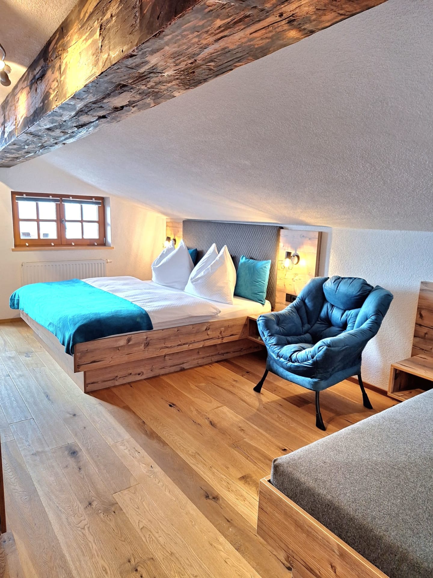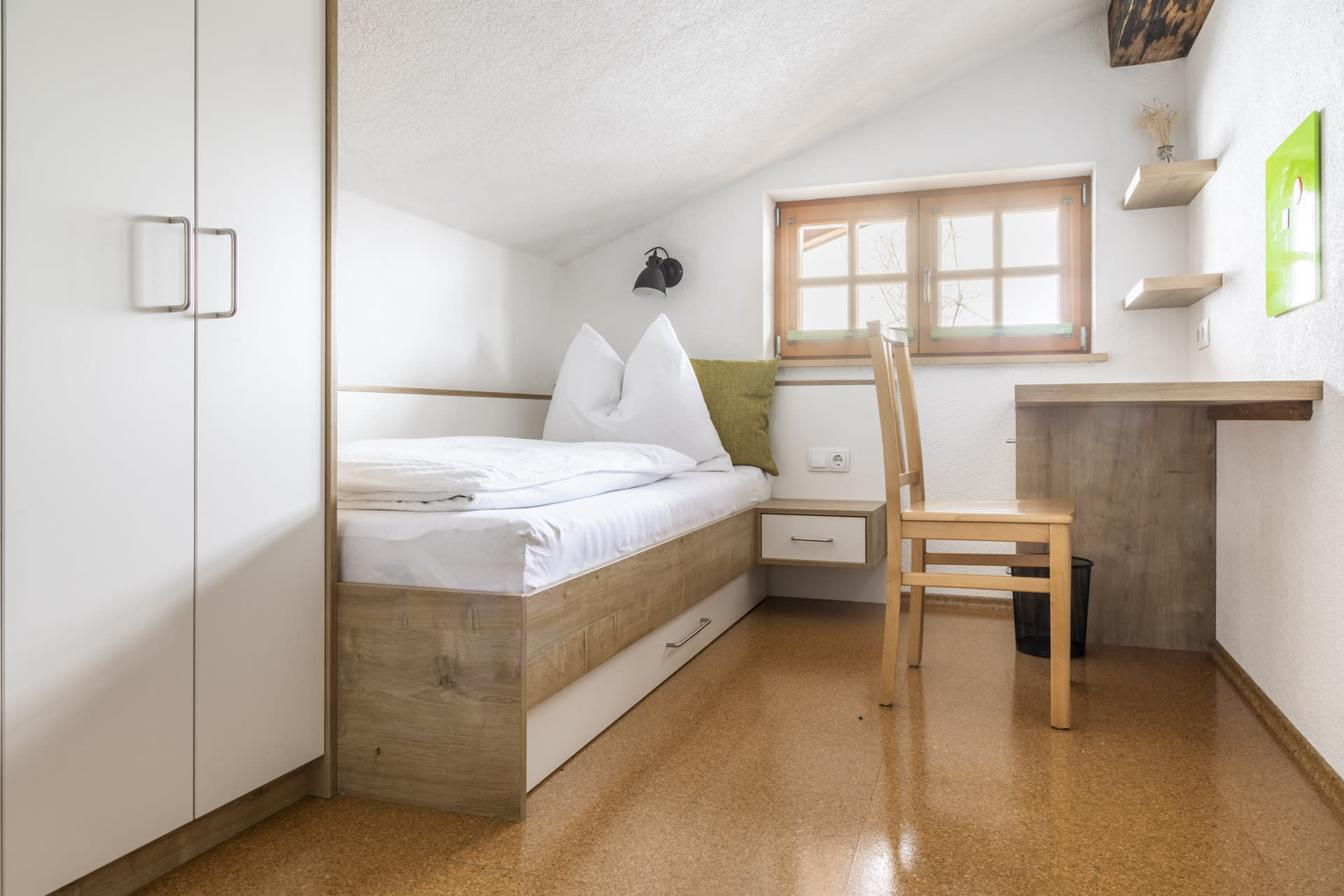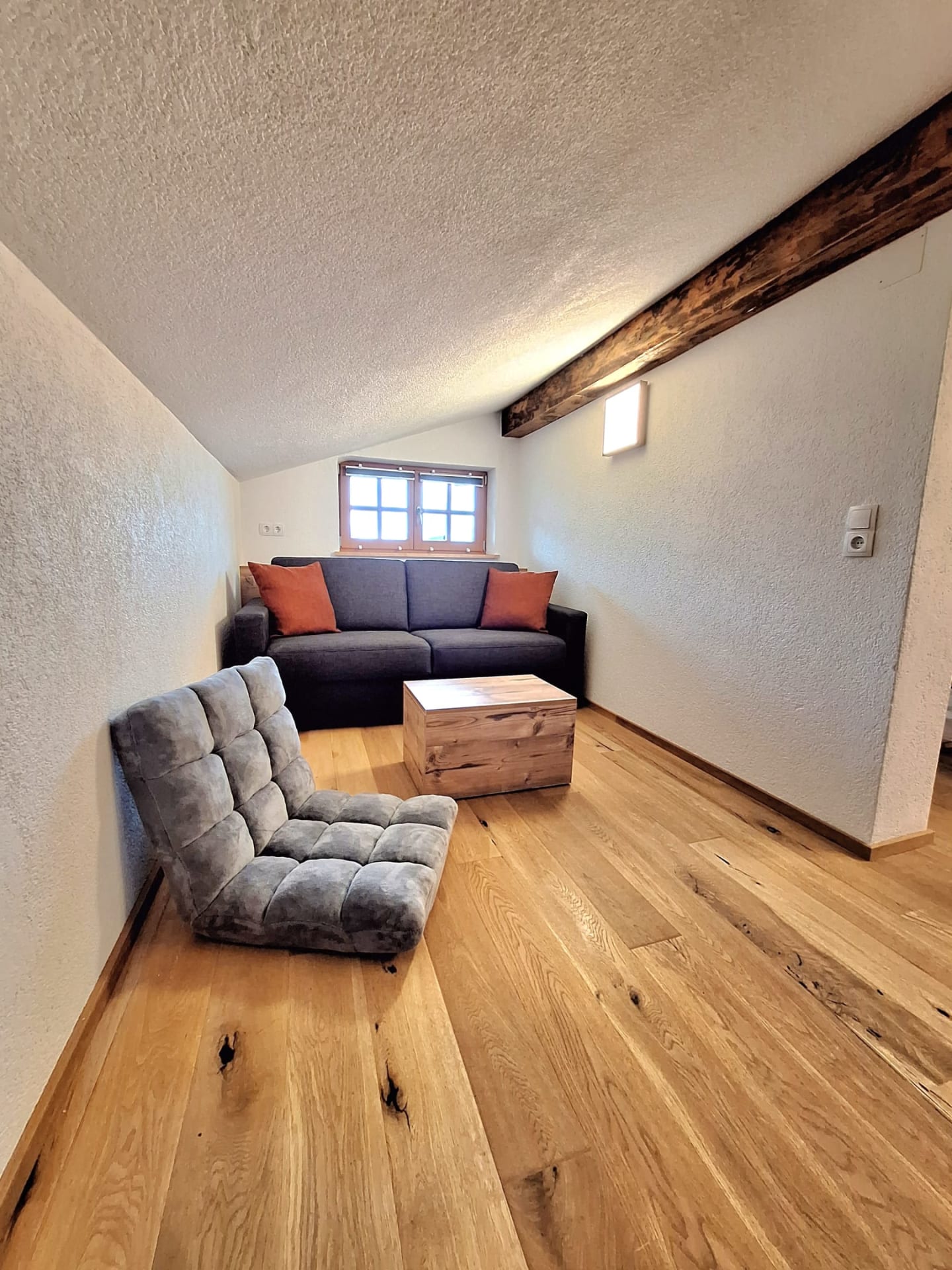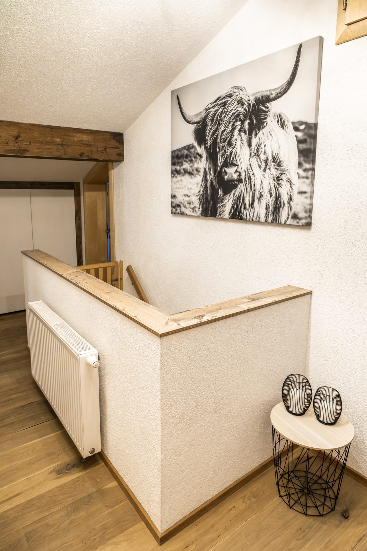 Unsere Ferienwohnung befindet sich im oberen Stock vom Bauernhaus und kann barrierefrei über einen extra Zugang erreicht werden. Sie bietet unseren Gästen viel Privatsphäre und Platz für bis zu 6 Personen.