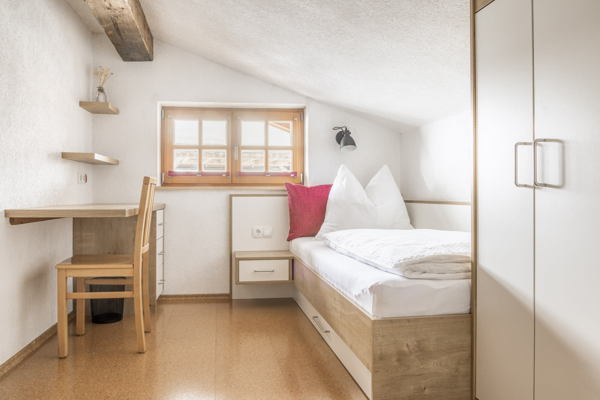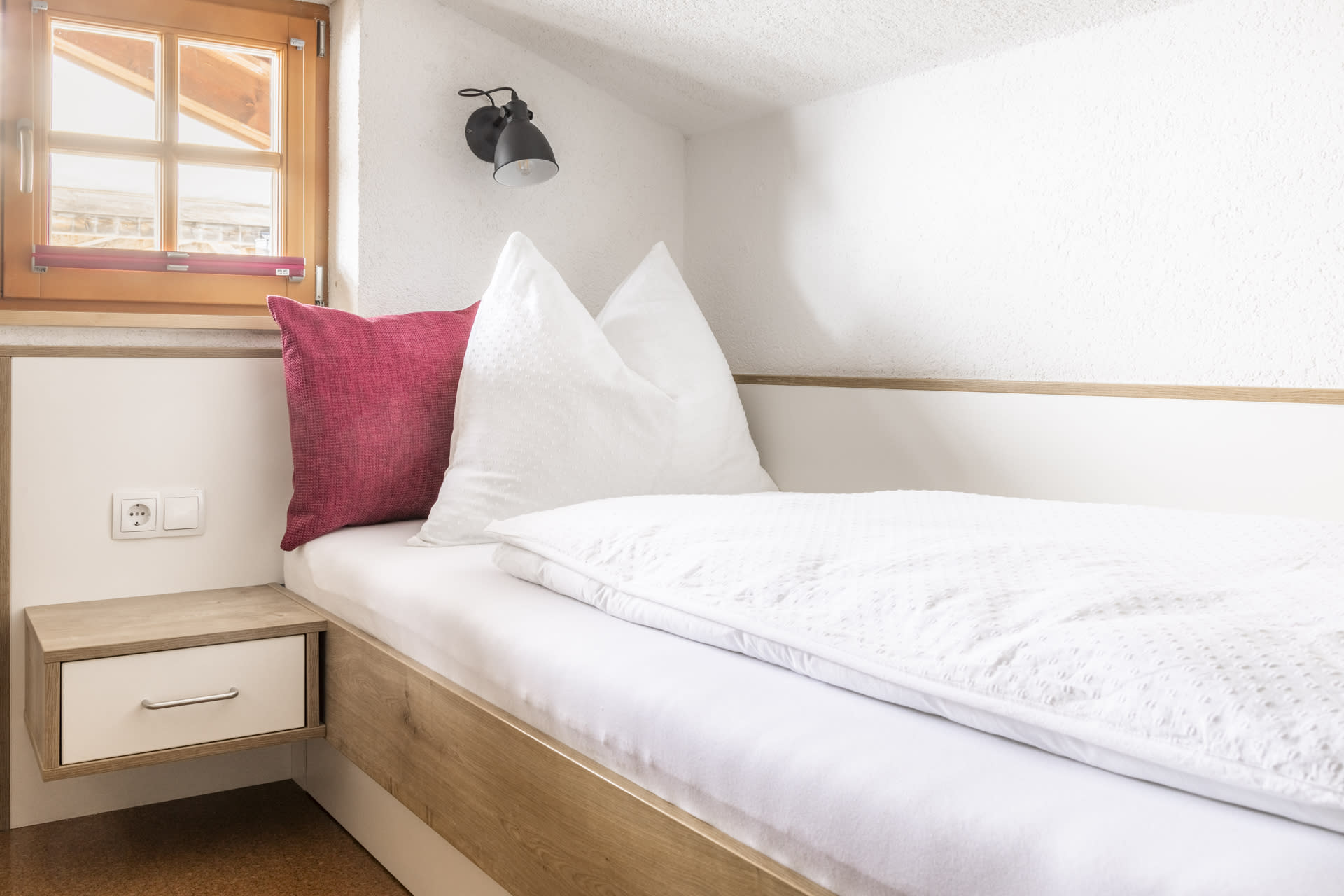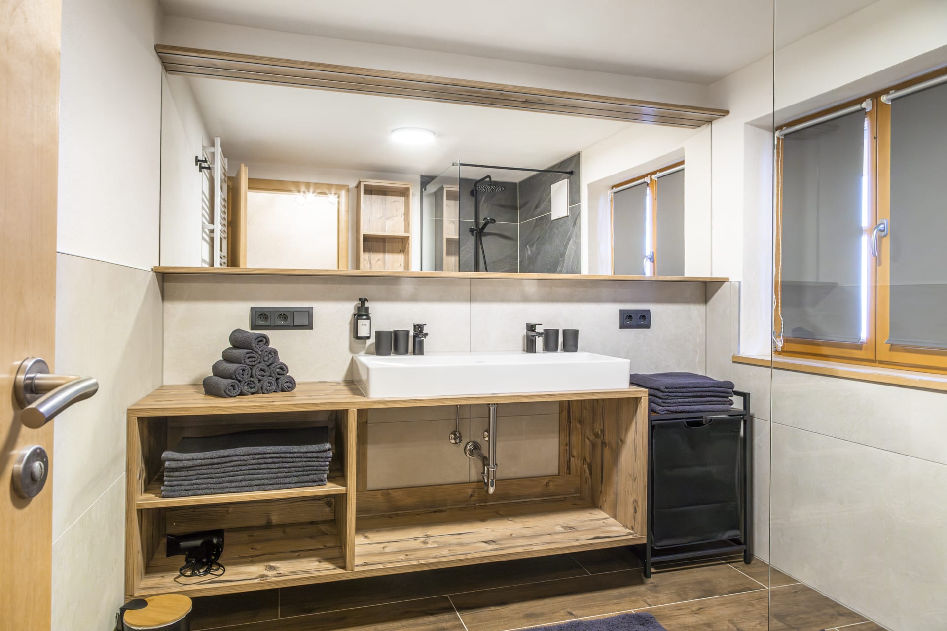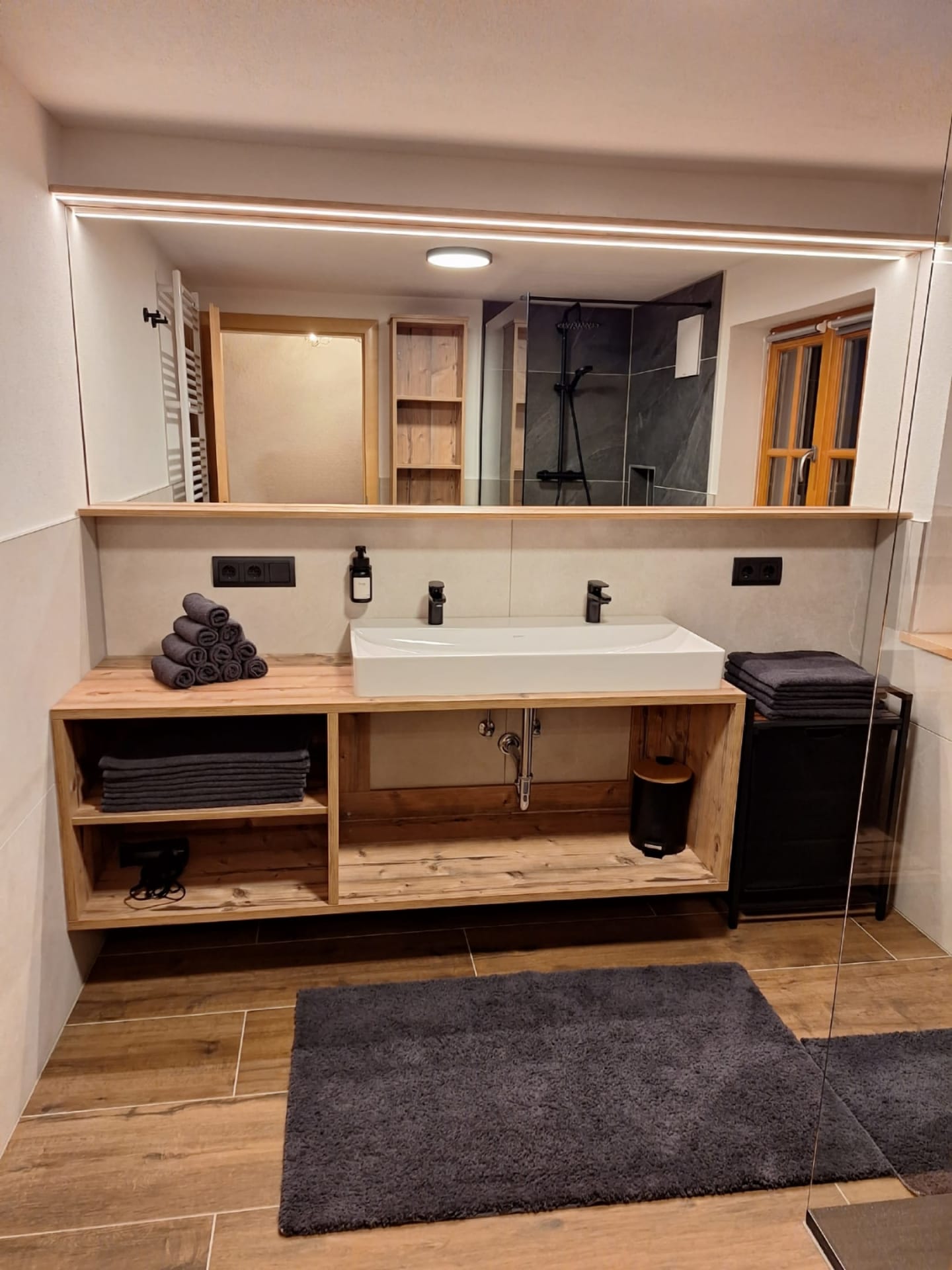 Unsere Ferienwohnung befindet sich im oberen Stock vom Bauernhaus und kann barrierefrei über einen extra Zugang erreicht werden. Sie bietet unseren Gästen viel Privatsphäre und Platz für bis zu 6 Personen.