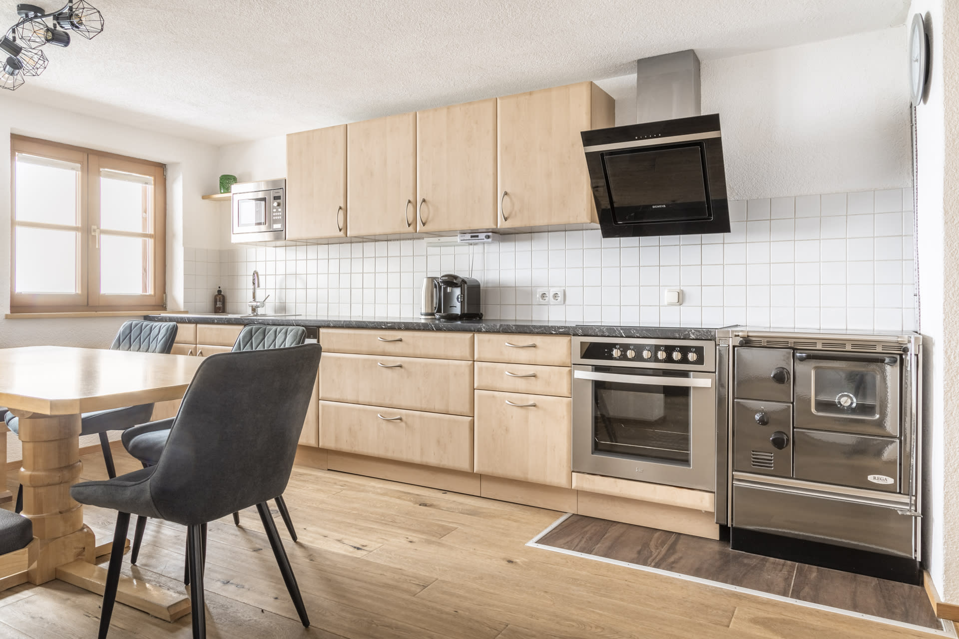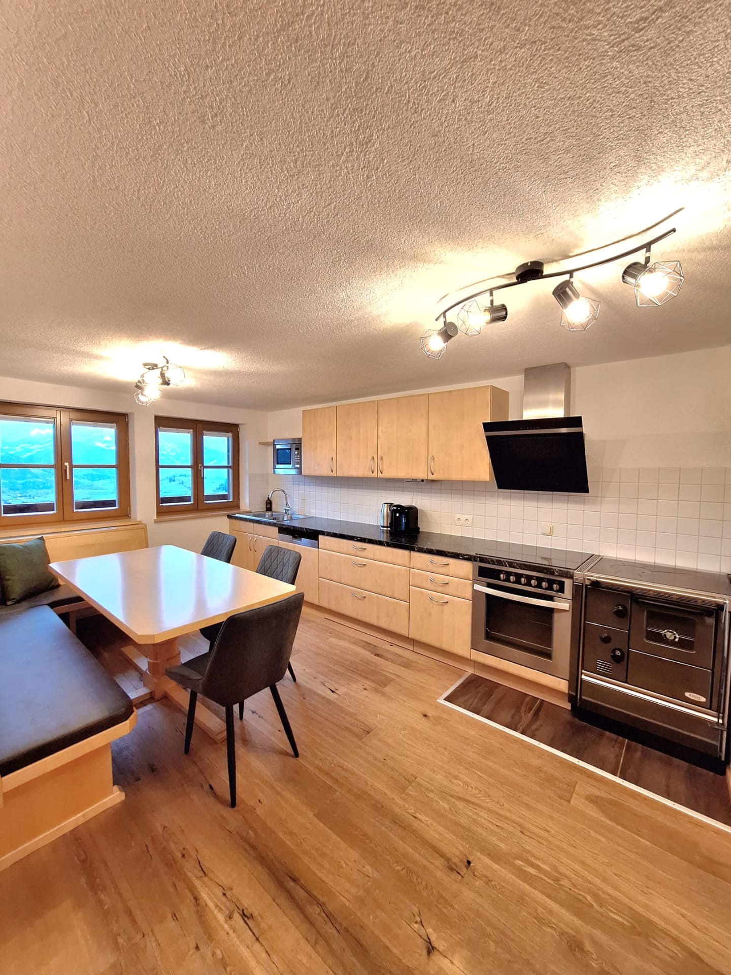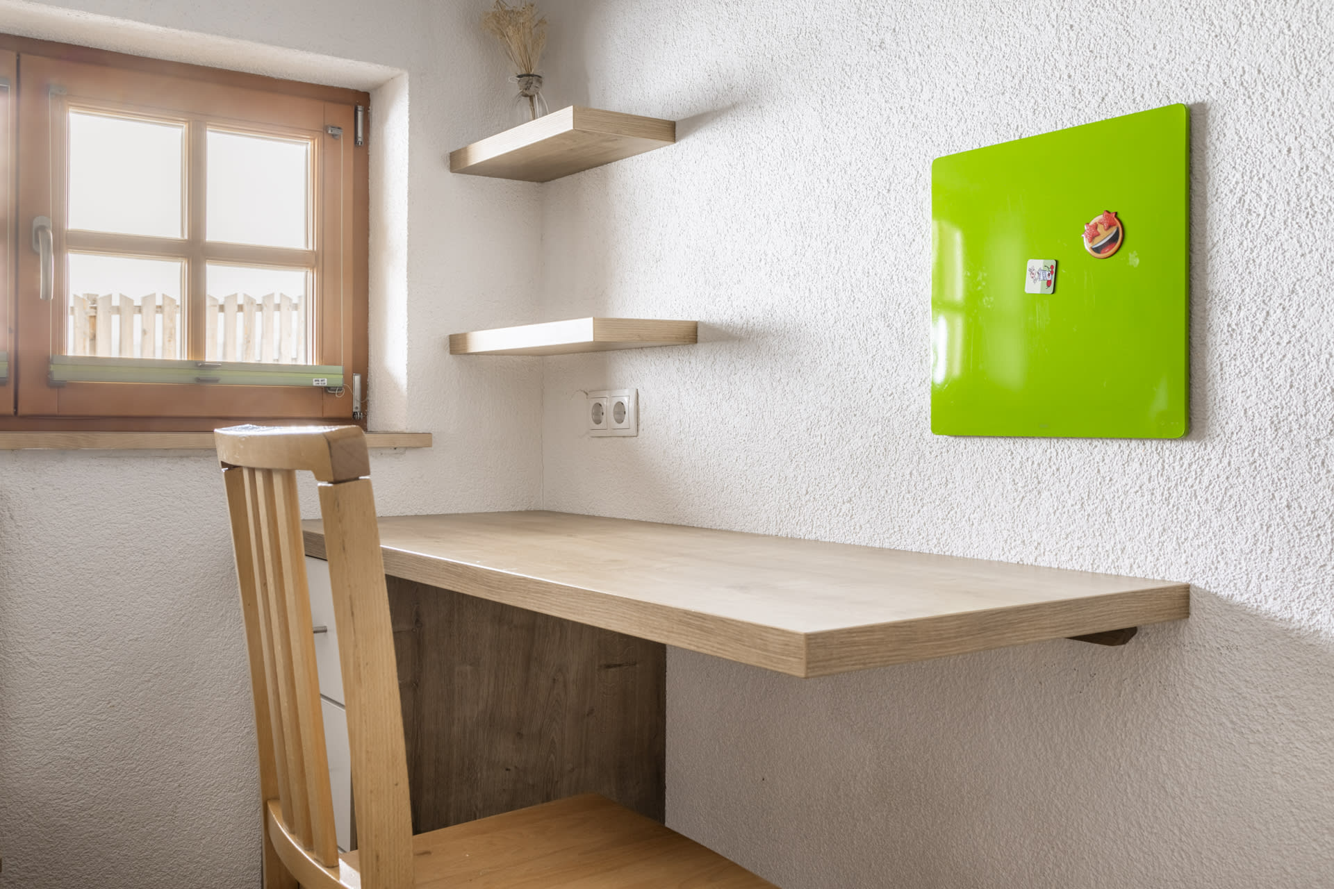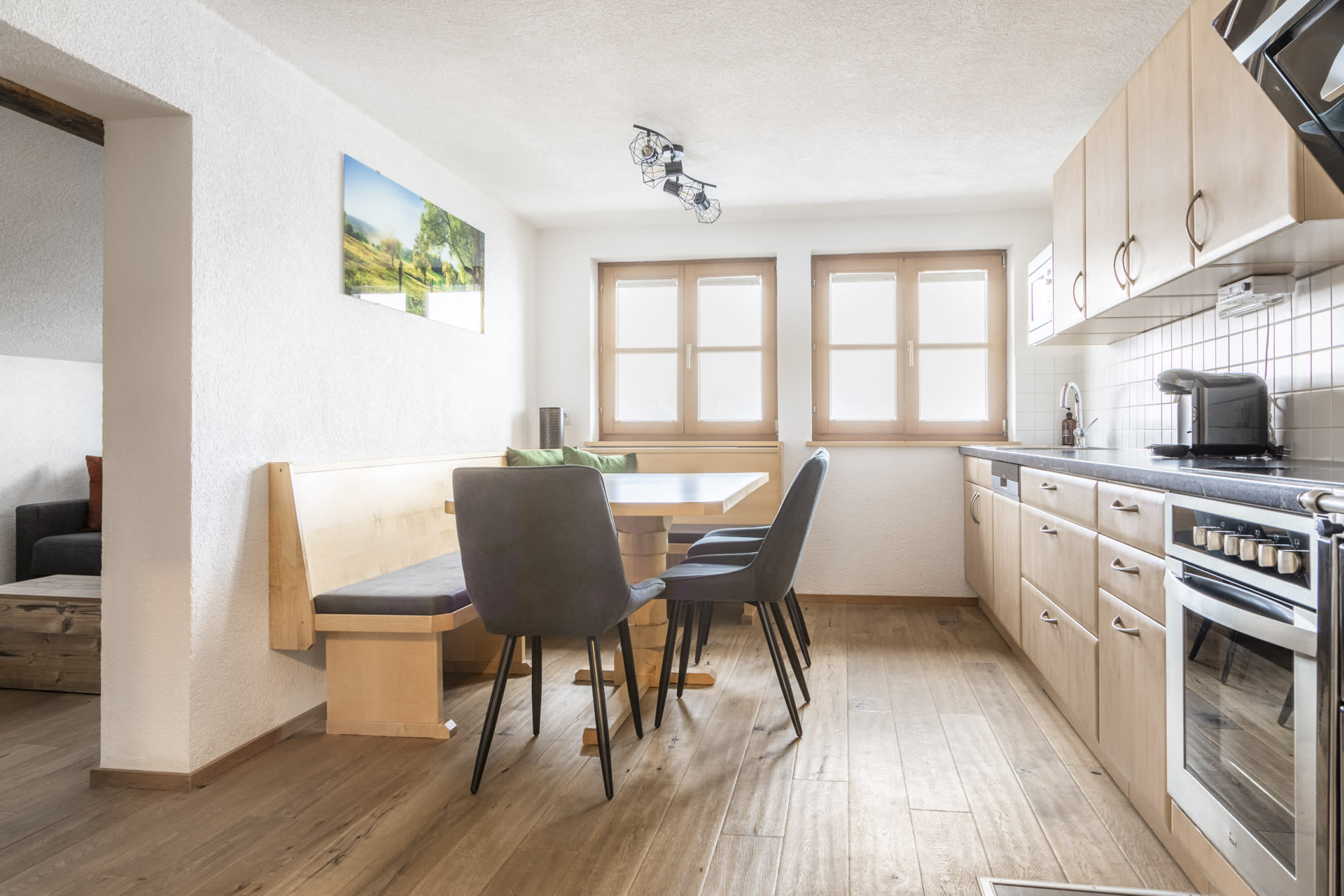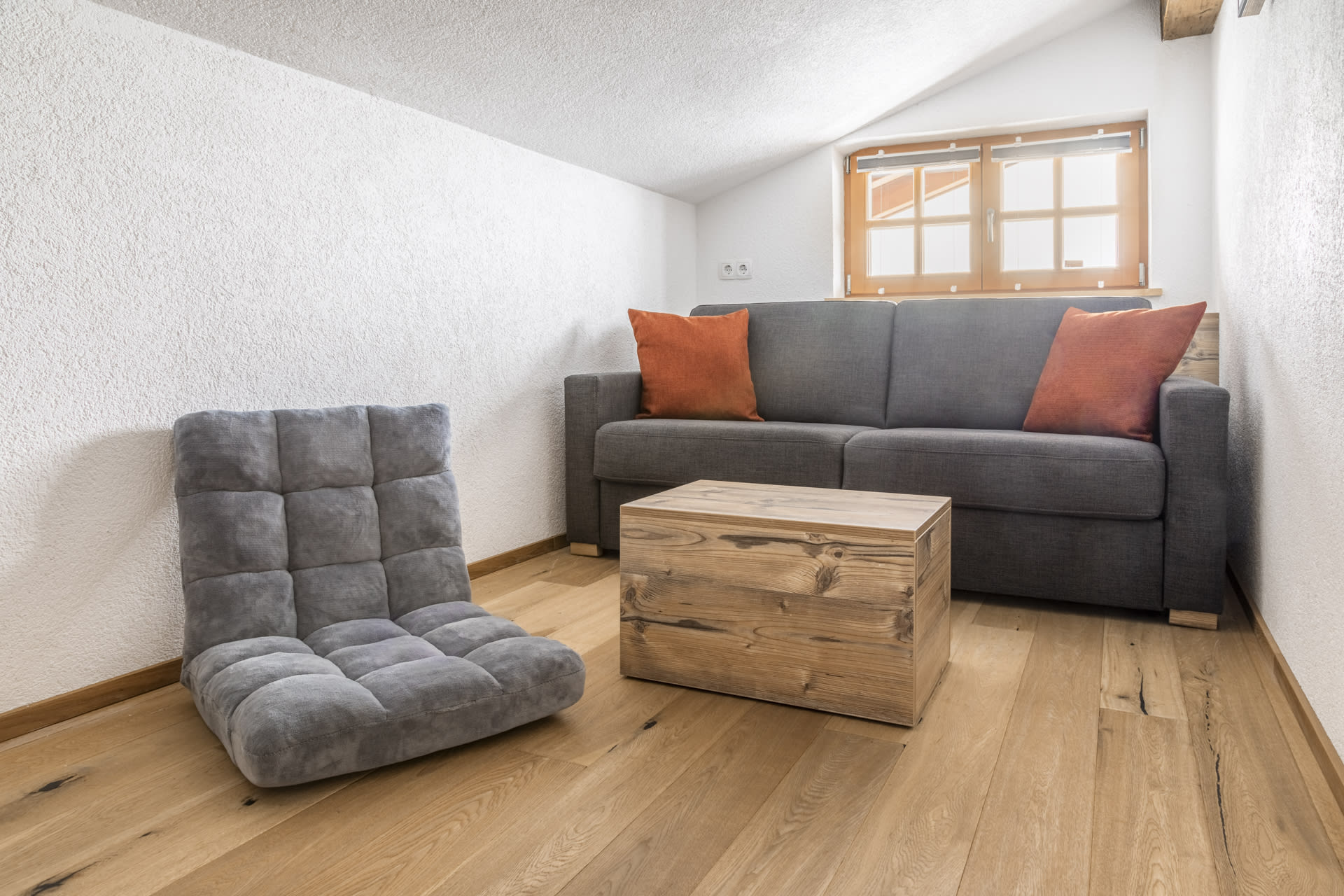 Sie genießen einen wunderschönen Ausblick vom Balkon und können dort Ihren Morgen schon mit einem Kaffee starten. In der Wohnküche steht Ihnen ein großzügiger Esstisch und eine vollausgestattete Küchenzeile zur Verfügung. Entspannen können Sie im Wohnzimmer (inkl. Schlafcouch) oder im eigenen Vorgarten. Hier gibt es genügend Platz zum Spielen im Spielhaus, zum Essen oder im Sommer auch zum Grillen.