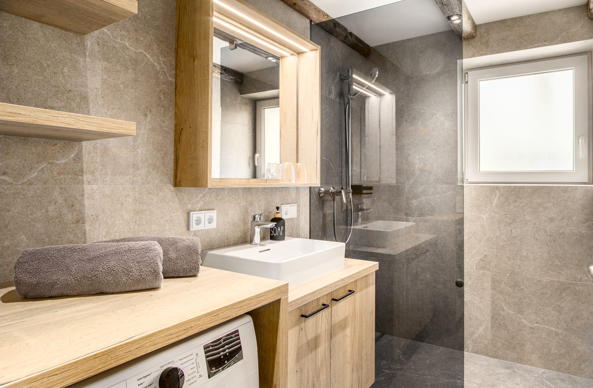 Das Appartement Freiblick Parterre 90 m² groß, im Erdgeschoß und perfekt geeignet für 2 - 6 Personen. Es ist ausgestattet mit einer Küche, einem Wohnzimmer, 2 Doppelbettzimmer, 1 Zweibettzimmer, einem Bad mit WC, einer Waschmaschine und hat direkten Zugang zum Garten mit Laube und einem Carport.