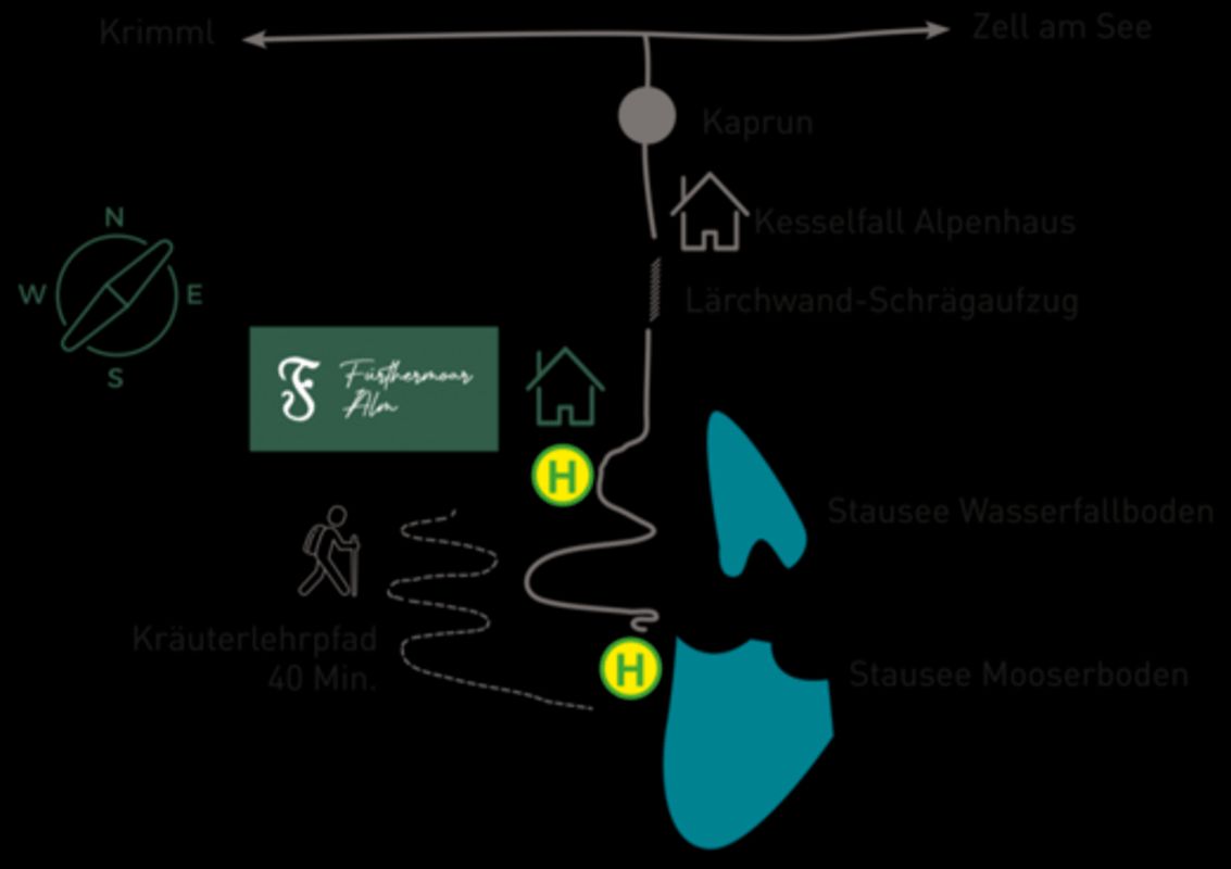 Unsere Alm liegt idyllisch im Kaprunertal zwischen dem Wasserfallboden und dem Mooserboden Stausee auf 1.803 Höhenmeter. Zwischen Berggipfeln und Stausee könnt ihr Entspannen und eure Auszeit in unseren Chalets genießen. Wir haben Hideaways geschaffen – für alle die nach Ruhe und Natur suchen! Raufkommen um runterzukommen!