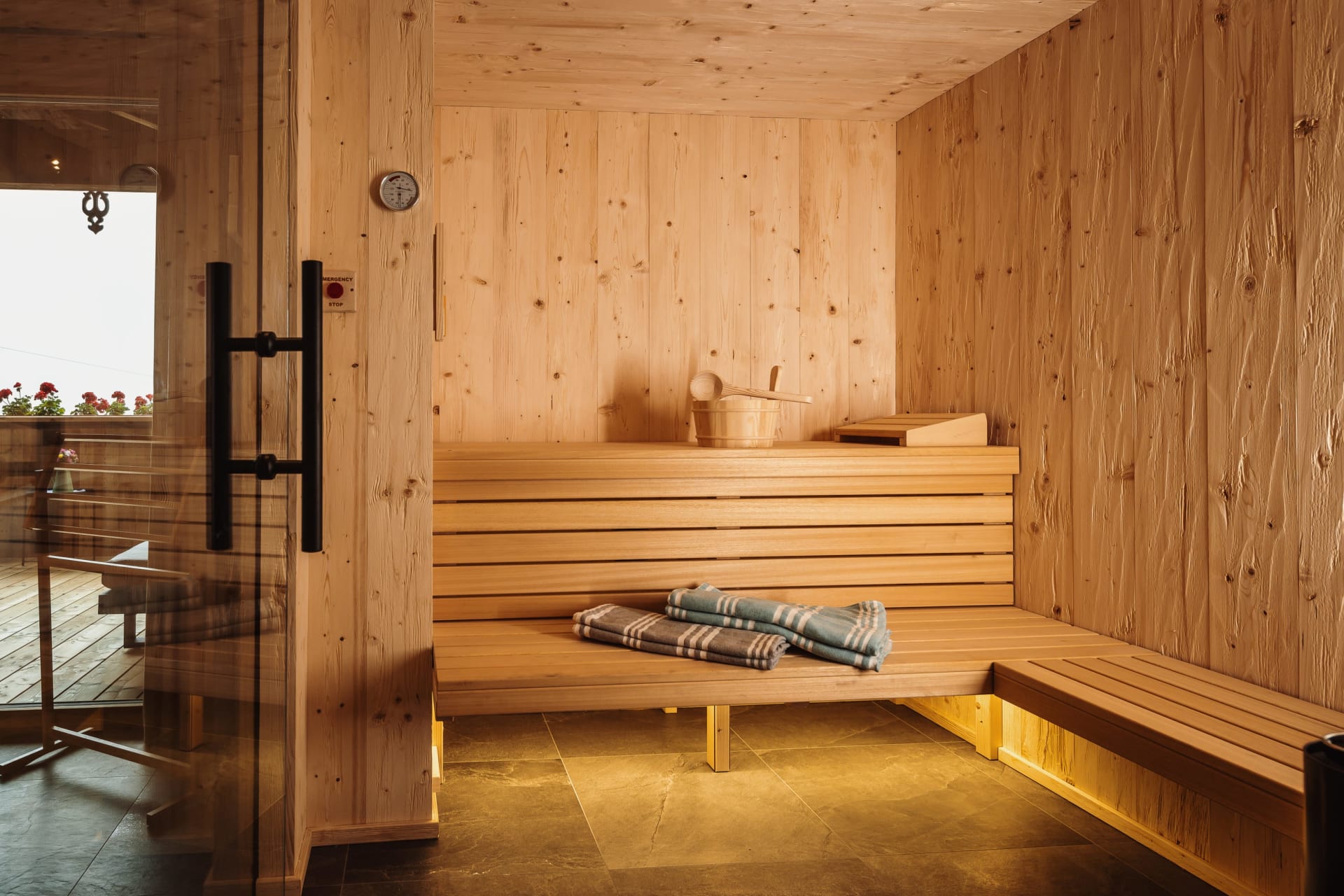 Die beiden Chalets bieten euch eine perfekte Kombination aus Privatsphäre und Luxus. Jedes Chalet verfügt über eine eigene Sauna, eine gemütliche Panoramabadewanne und eine private Dachterrasse. Der abgezäunte Garten ist mit einer Hänge-Schaukel unter dem Vordach, einem Esstisch auf der überdachten Veranda und einem Holzkohlegrill ausgestattet.