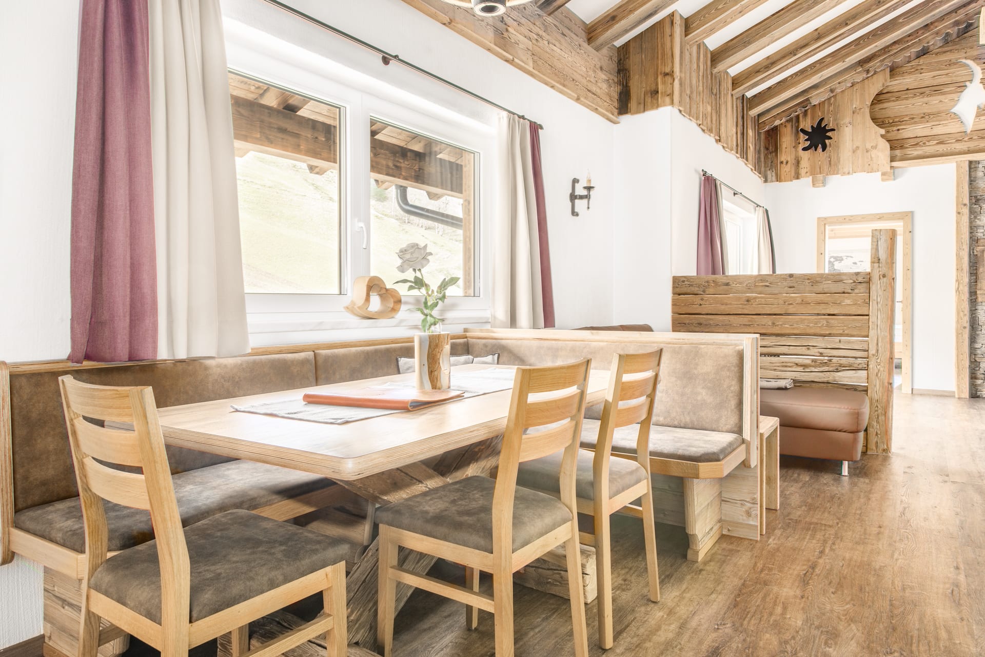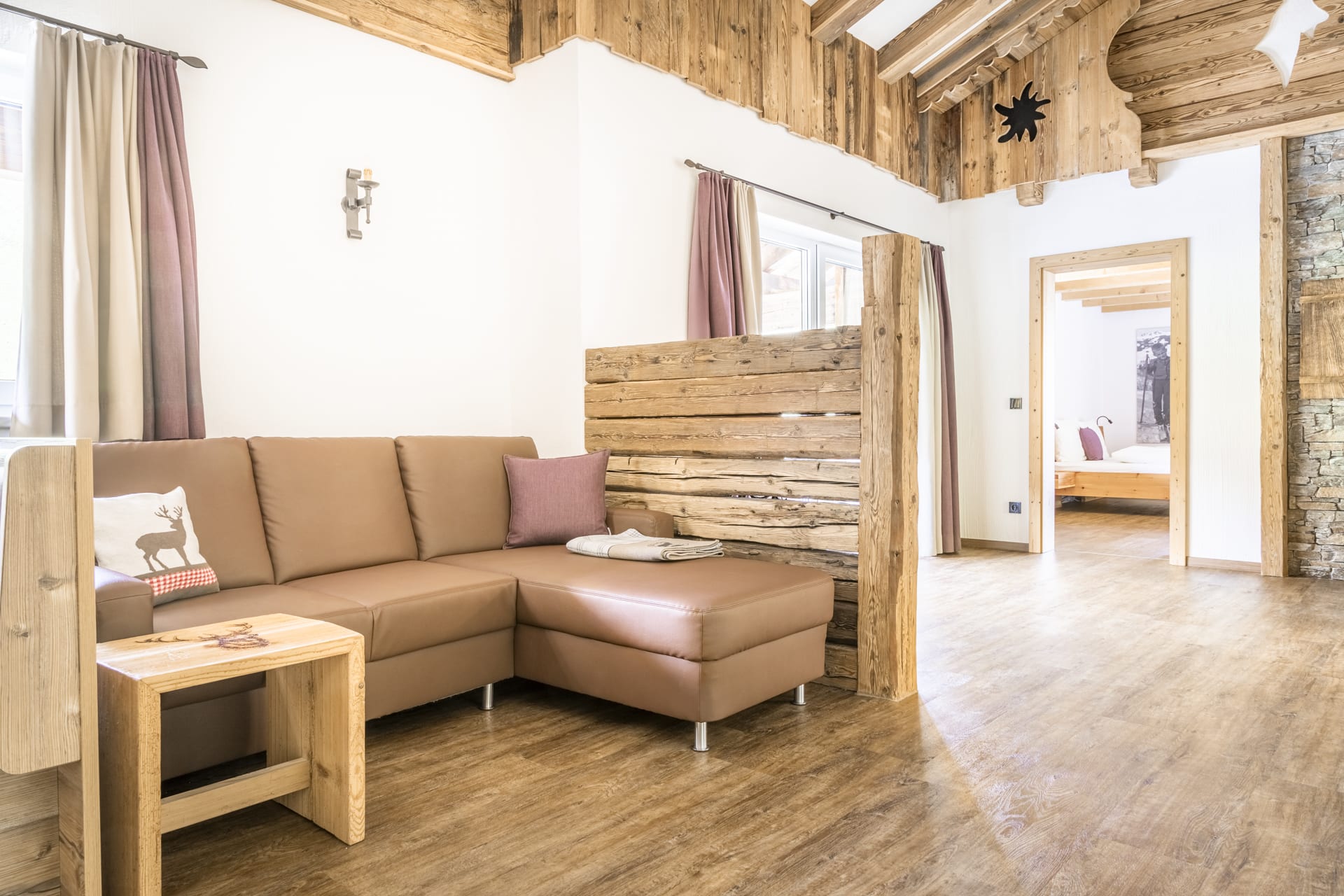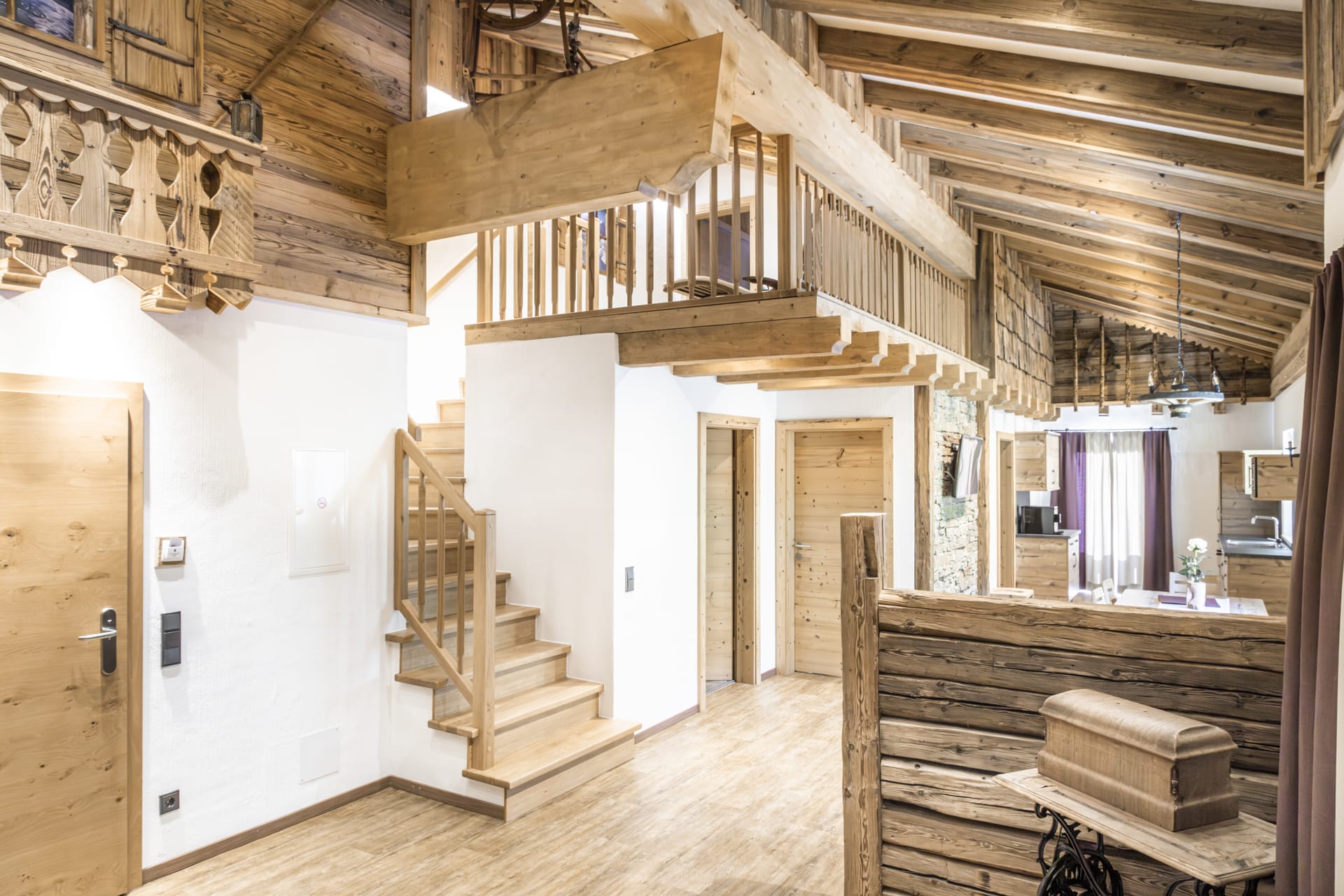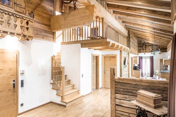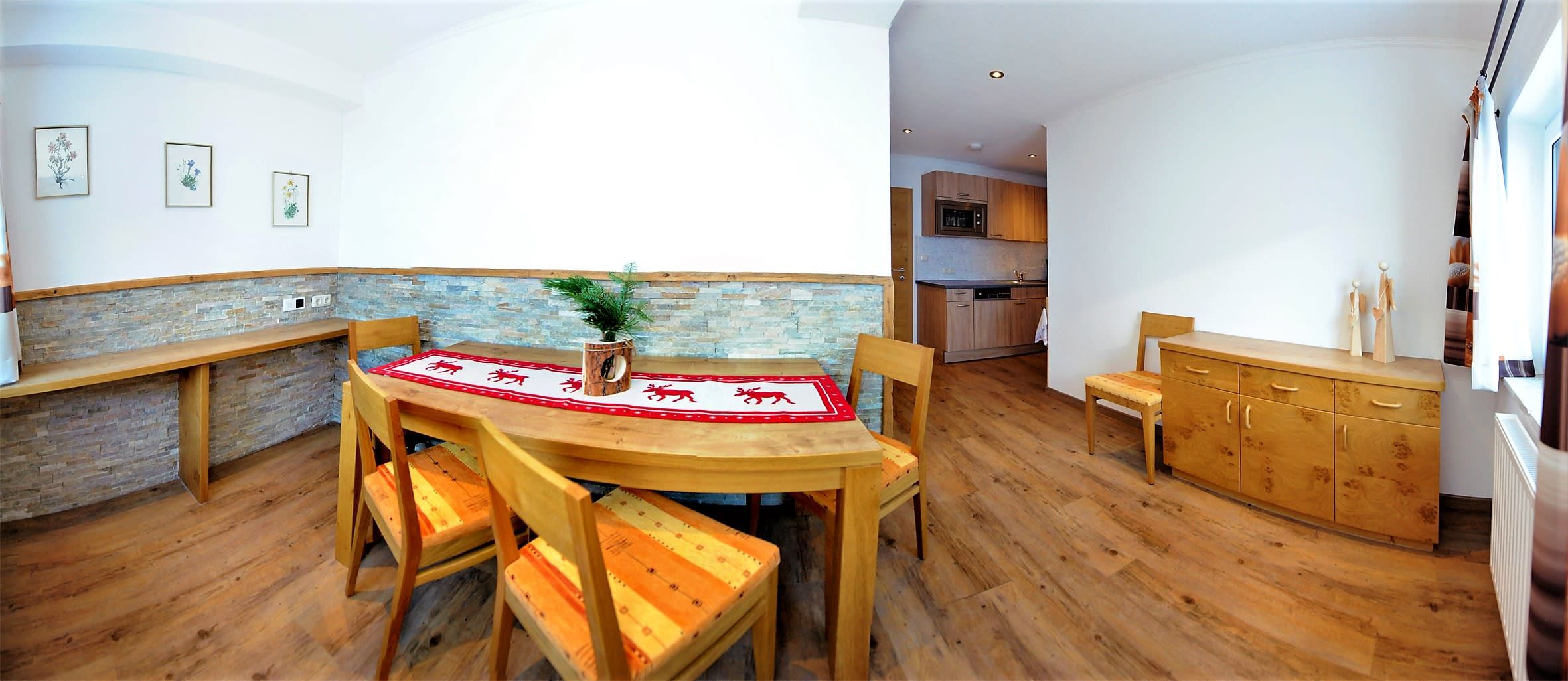 Das Appartement Stafflkogel besticht durch Gemütlichkeit, Größe und seiner Zirbenholzeinrichtung. Der Altholzstil zieht sich durch die gesamte Wohnung und sorgt für eine gemütliche Atmosphäre. Auf 120 m² ist Platz für 6 Personen und die Ferienwohnung verfügt über: