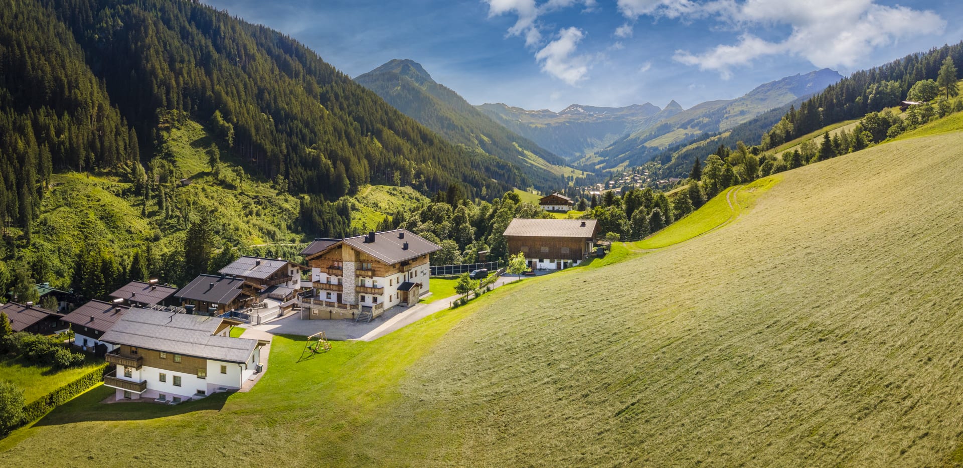Auf 1200 Höhenmeter blickt man von unserem Hof auf das Tal von Hinterglemm und ein beeindruckendes Bergpanorama. Unser Hof liegt direkt an der Skipiste und eignet sich auch im Sommer ideal für Mountainbiketouren und Wanderungen.