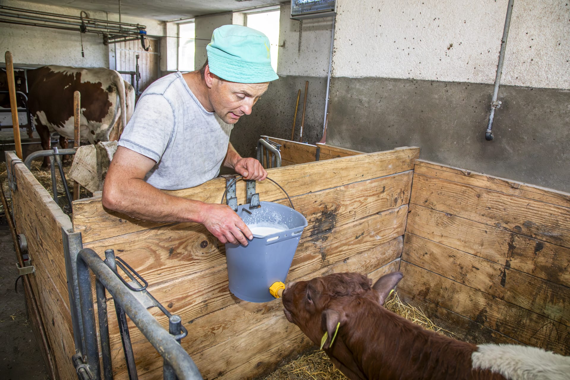 Im Sommer sind unsere  Pinzgauer Jungtiere auf der Alm und unsere Kühe und Tauernschecken Ziegen bleiben gemeinsam mit den Katzen am Hof. Zweimal in der Woche fahren wir mit dem Lift auf die Alm, um die Kälber zu füttern. Dabei könnt ihr uns gerne begleiten und beim Suchen der Kälber helfen. Vom Herbst bis zum Frühjahr freuen wir uns über Hilfe beim Melken im Stall.