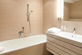 Die Wohnung verfügt über 1 Schlafzimmer mit großem Doppelbett (220 x 180 cm) und 1 großes Wohn- /Schlafzimmer mit einer Doppel-Ausziehcouch für 1-2 Personen. Komplett ausgestattete Küchenzeile mit E-Herd, Geschirrspülmaschine, Kaffeemaschine, Kühlschrank .... Kabel-TV mit Flachbildschirm, Wireless-Internet (auch Kabel an der Rezeption erhältlich).