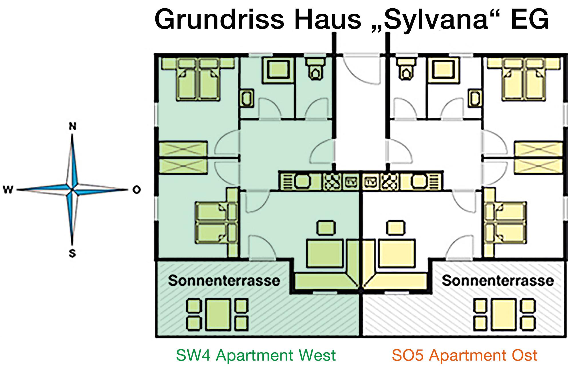 • mit je 2 Doppelzimmern, Wohn-Essraum, Diele, Küche, Dusche/WC seperat