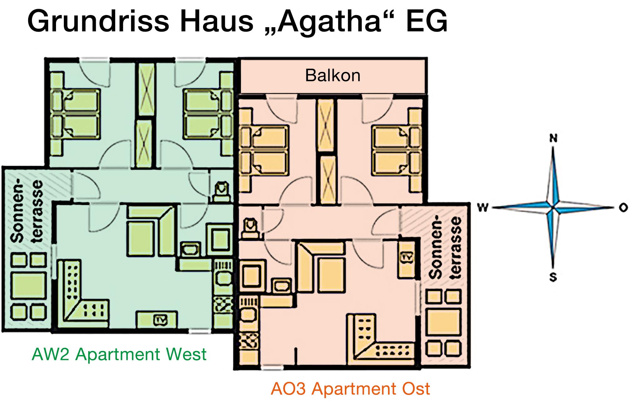 Die Ferienwohnungen im Ferienhaus Agatha und im Ferienhaus Sylvana sind komplett ausgestattet und befinden sich in einer Parkanlage mit 4000m2.