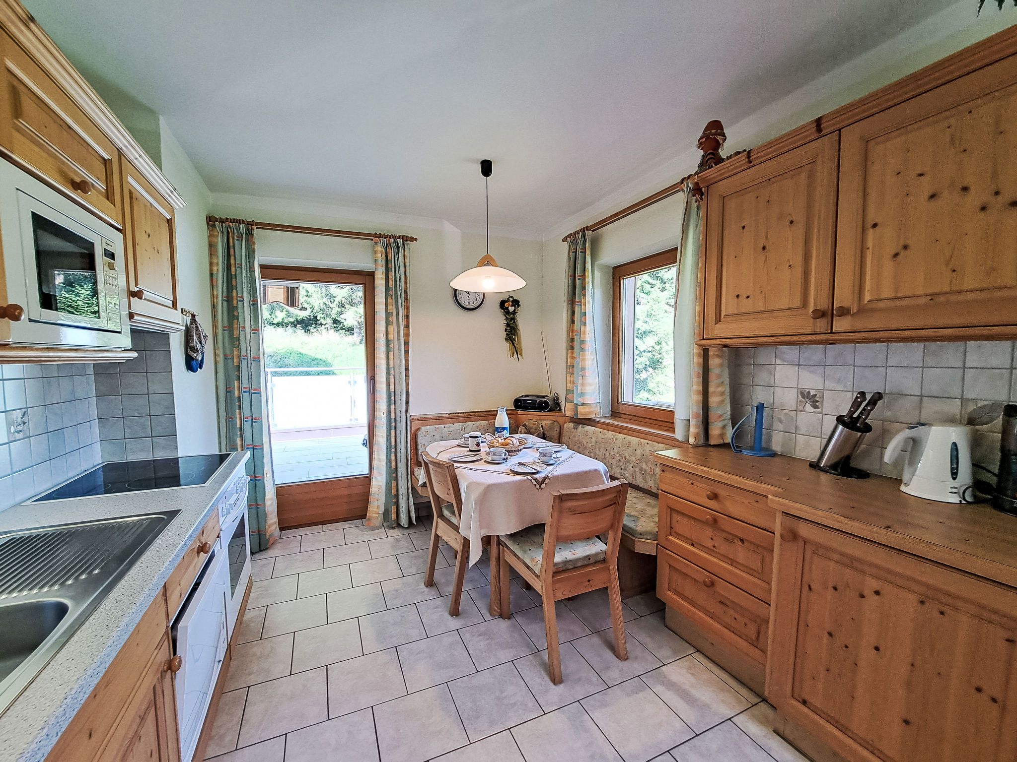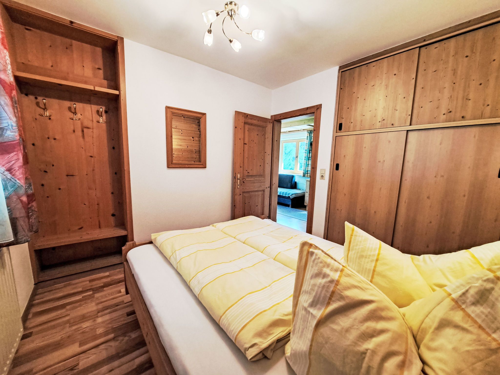 Hermine, 2-Zimmer-Wohnung 42 m2, Südostlage. Gemütlich eingerichtet: Wohn-/Schlafzimmer mit 1 Diwanbett, Essecke und Sat-TV. Ausgang zum Balkon. 1 Doppelzimmer. Kleine, offene Küche (4 Kochplatten, Backofen, Toaster, Wasserkocher, elektrische Kaffeemaschine). Dusche/WC. Heizung. Grosse Terrasse. Terrassenmöbel. Sicht auf die Berge. Zur Verfügung: Internet (Wireless LAN, gratis). Bitte beachten: Nichtraucher-Unterkunft. 1 kleines Haustier/Hund erlaubt. Feuerlöscher.