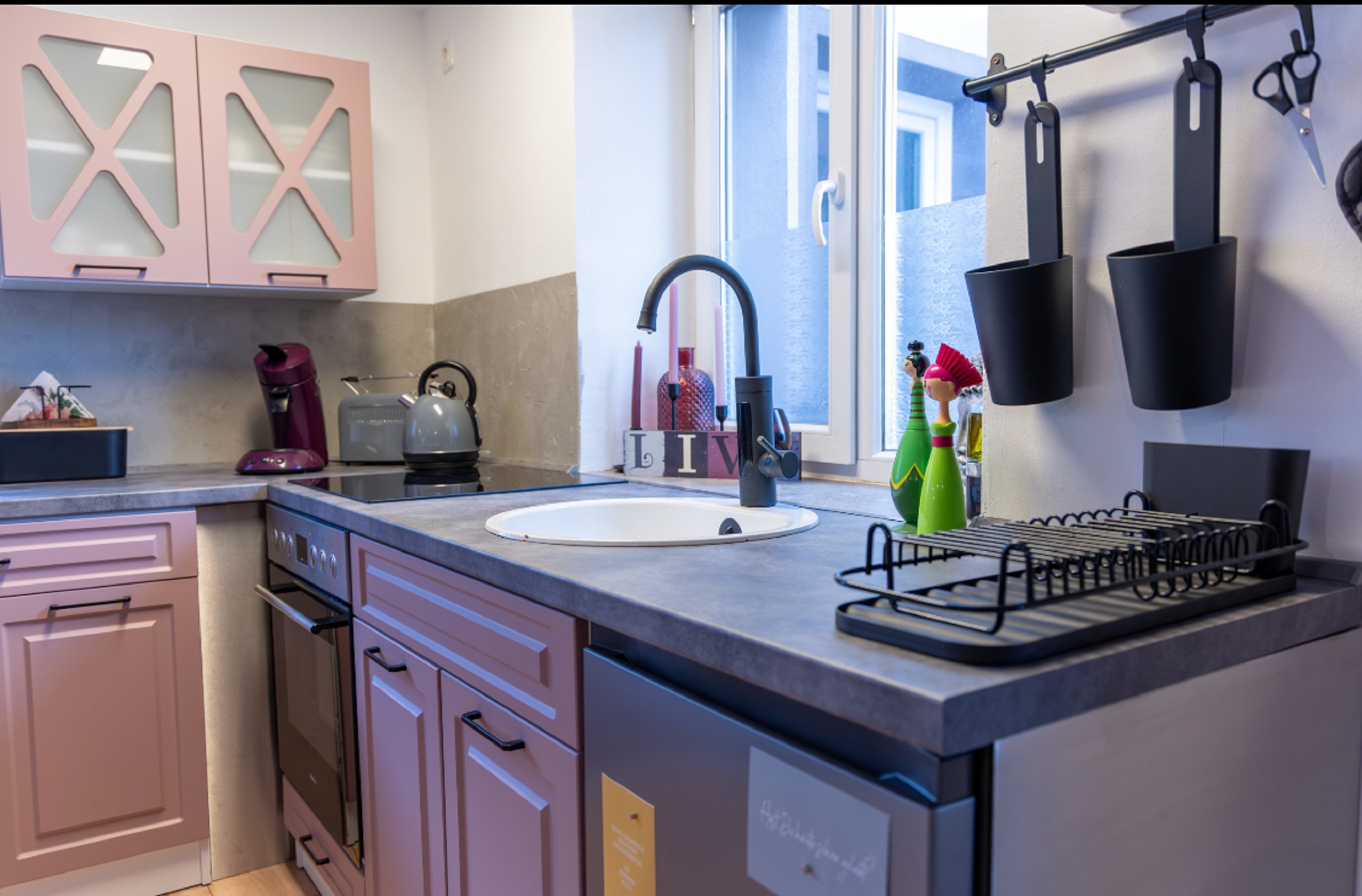 Unsere 2024 neu gebaute und gemütliche Ferienwohnung im vintage-modern Stil mit ca 60qm ist ebenerdig mit separatem Eingang und bietet Platz für 1-4 Personen. Die komplett ausgestattete Küche mit Kühlschrank, Herd, Backofen, Wasserkocher und Kaffeemaschine lässt keine Wünsche offen. Die FeWo verfügt über ein Schlafzimmer mit einem Doppelbett. Die Wohnküche mit Schlafcouch, TV und Sitzgelegenheit runden das Gesamtbild ab. Offene lichtdurchflutete Studiowohnung. Gerne kann ich auf Anfrage ein Babybett bzw. Babyhochstuhl zur Verfügung stellen. Die Terrasse lädt zum Verweilen ein. Grillmöglichkeit vorhanden.
