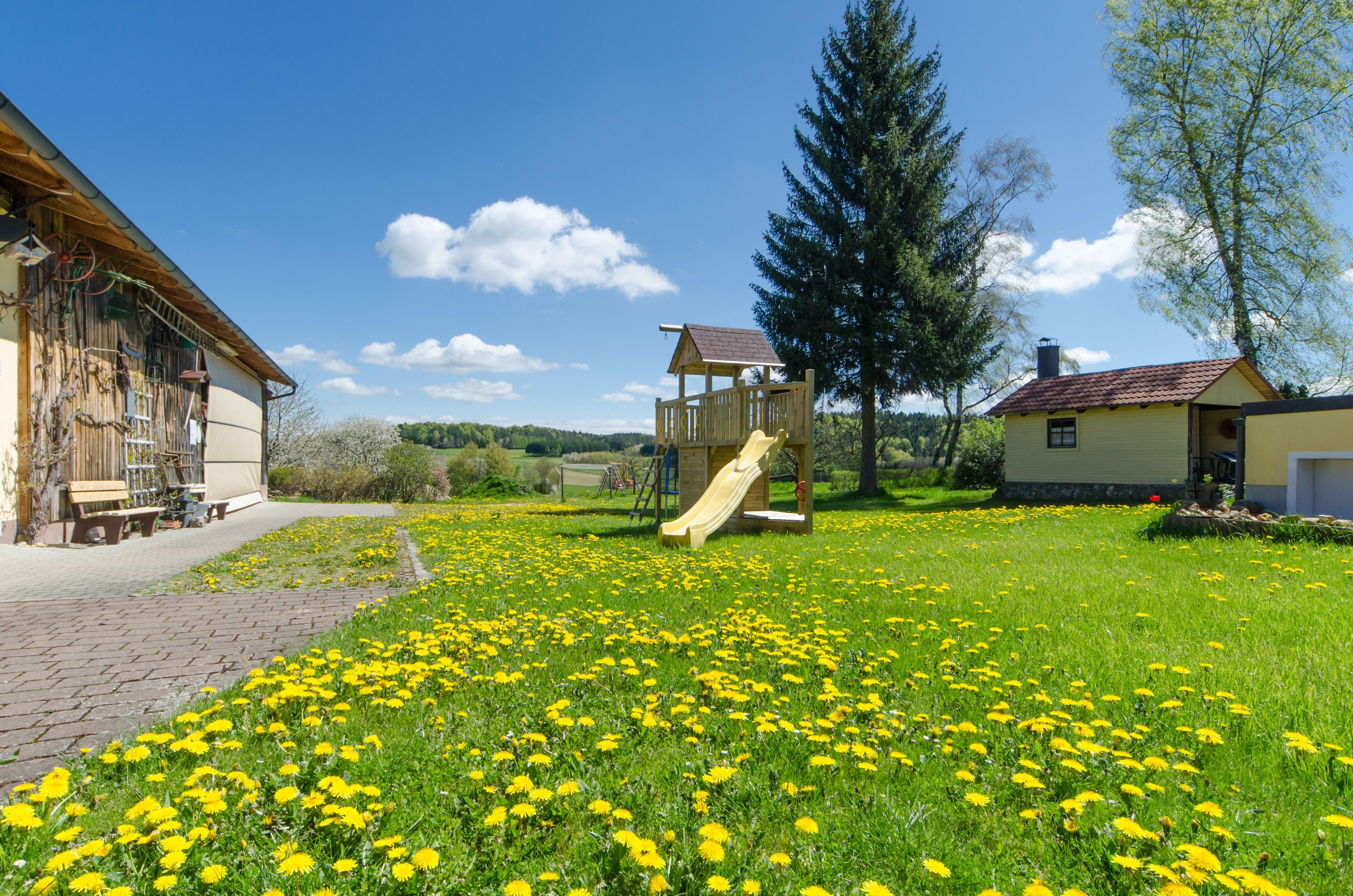 Für die “kleinen Gäste” steht ein großer Garten mit Kinderspielplatz, Trampolin und einem Fussballtor zur Verfügung.