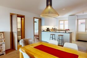 Die Unterkunft verfügt über eine voll ausgestattete Küche mit einem Geschirrspüler und einem Backofen. Zwei Bäder mit Dusche, Waschmaschine und schnelle Internetverbindung. Eigene Waschmaschine. Skiraum zur Mitbenützung. Ein Aussenparkplatz.