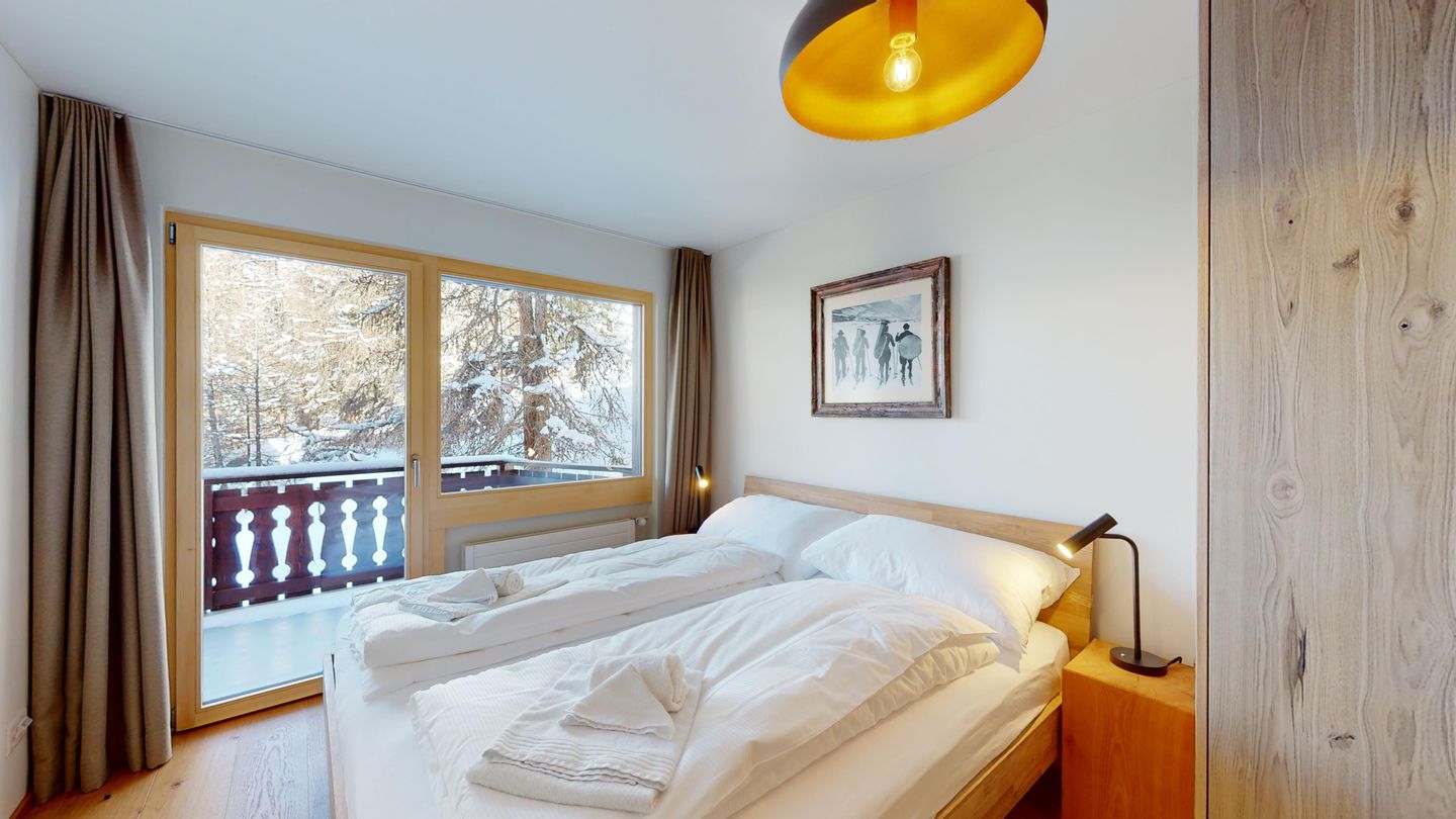 Neu renoviertes Apartment im 2. Stock (70m2) in Surlej mit einem Balkon und Bergblick.