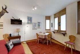 2-Zimmerwohnung im EG 55 m2. Eingang mit Garderobe. Dusche/WC und Lavabo. Offene Küche mit Kühlschrank mit Tiefkühlfach/Backofen, Chicco d'Oro Kaffeemaschine, keinen Geschirrspüler. Wohn-/Esszimmer mit Schlafsofa (für eine Person). TV, Internet und Radio. Ein Doppelzimmer. Komfortable Einrichtung. Waschküche und Skiraum zur Mitbenützung. Reservierter Garagenplatz. Haustiere sind nicht erwünscht.