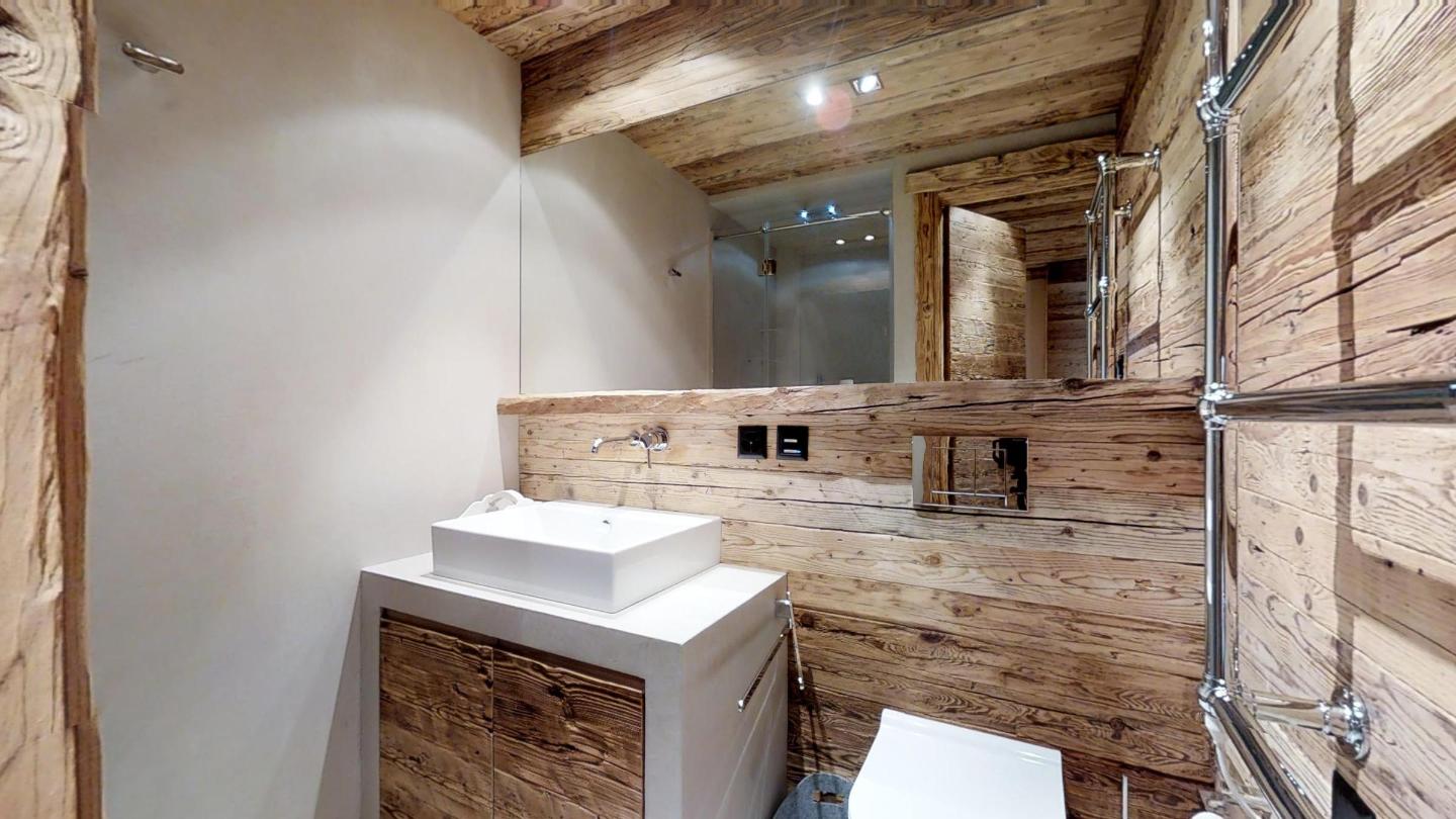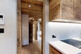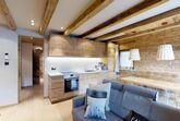 Die spezielle Tannenholz-Ausstattung, sowie der ausgefallene Ulmenholzboden verleihen der Wohnung einen individuellen Flair.