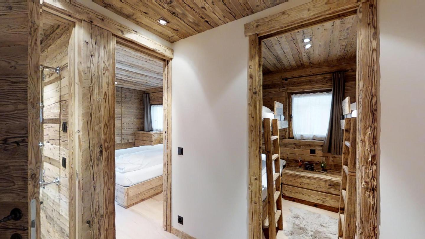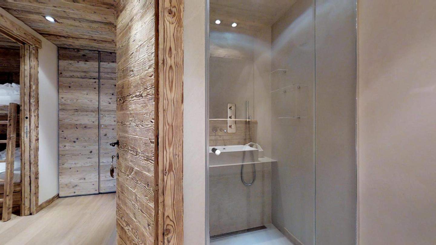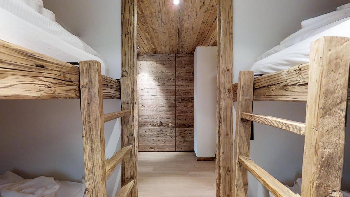 Das Kinderschlafzimmer ist mit 2 Stockbetten ausgestattet. Gegenüber befindet sich eines der Badezimmer mit Dusche, WC und Waschbecken.