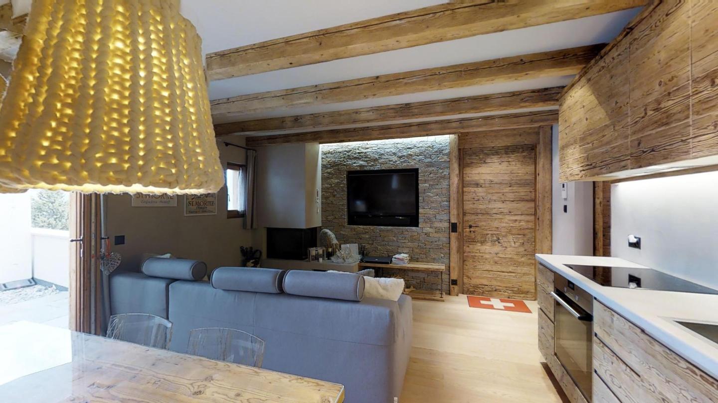 Sehr moderne, im Engadiner Alpenchic, eingerichtete 3-Zimmerwohnung mit grosszügiger Terrasse.