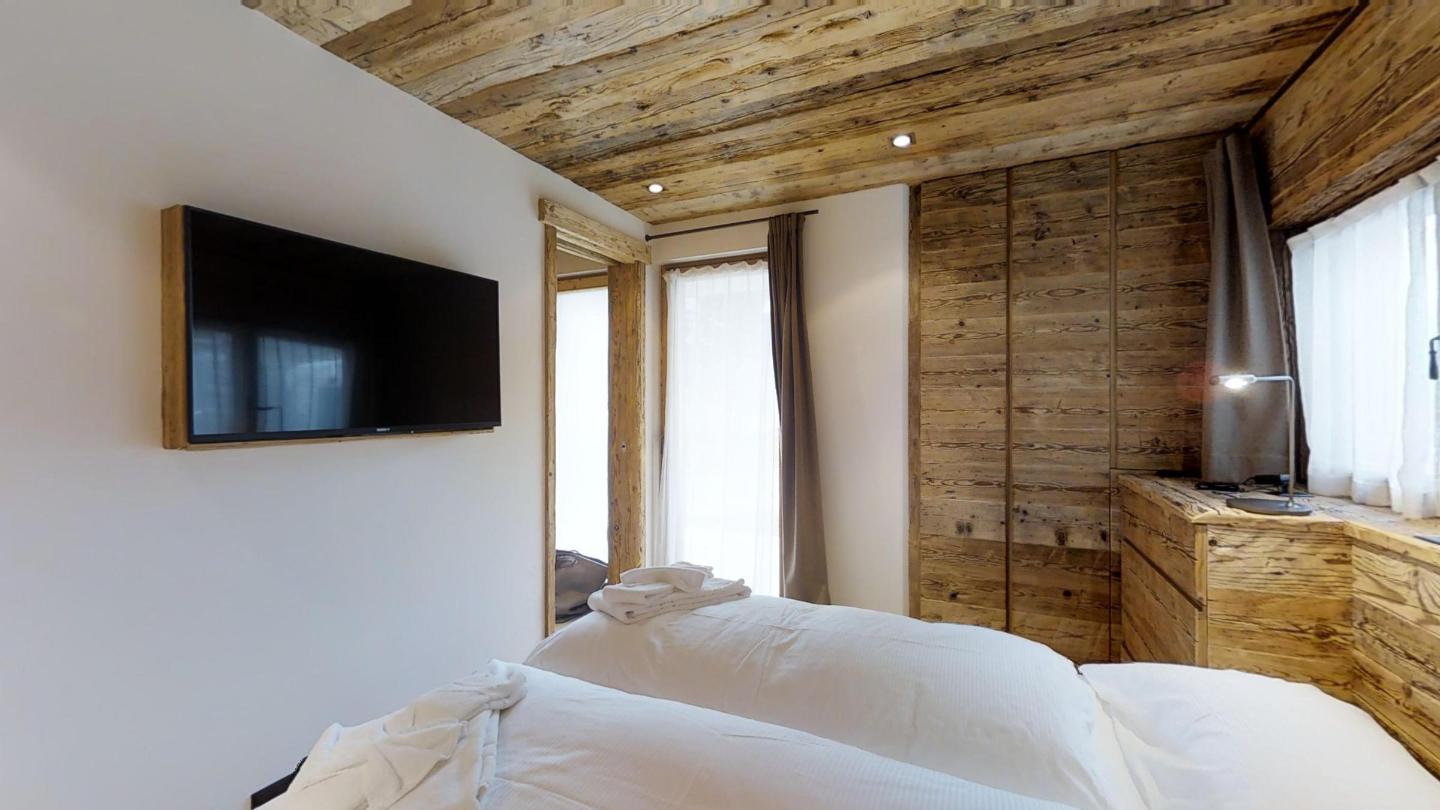 Angrenzend am Kinderschlafzimmer kommt man zum Hauptschlafzimmer, welches ein Doppelbett, einen Kleiderschrank und einen Flachbildschirm-TV hat.