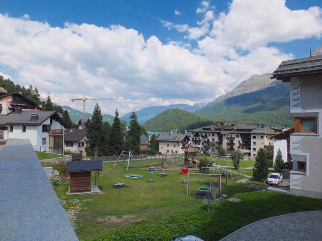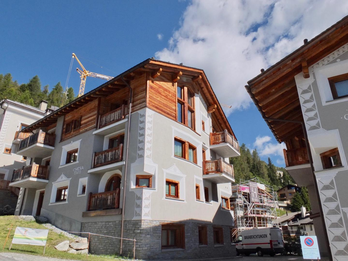 Das 2014 erbaute Mehrfamilienhaus befindet sich am Ortsausgang von Silvaplana Richtung Julierpass.