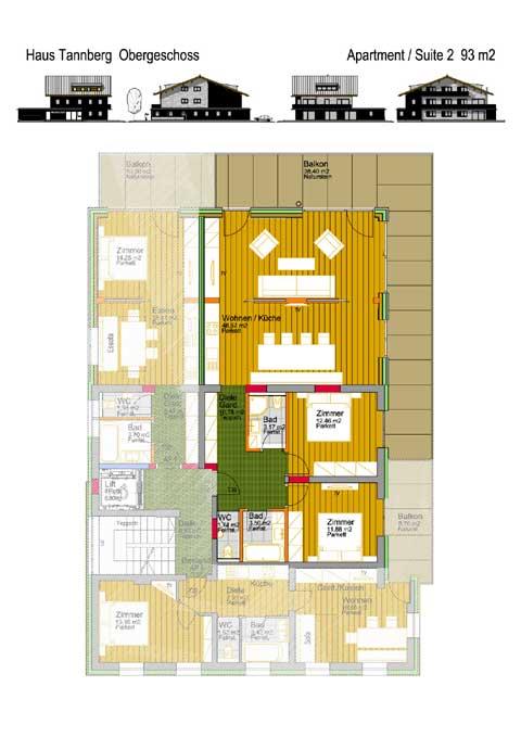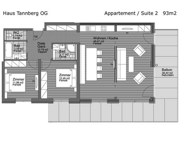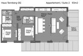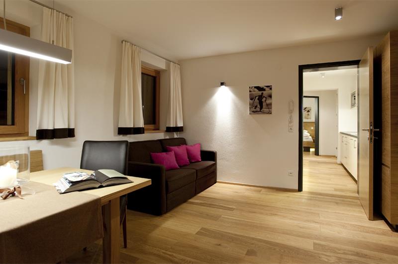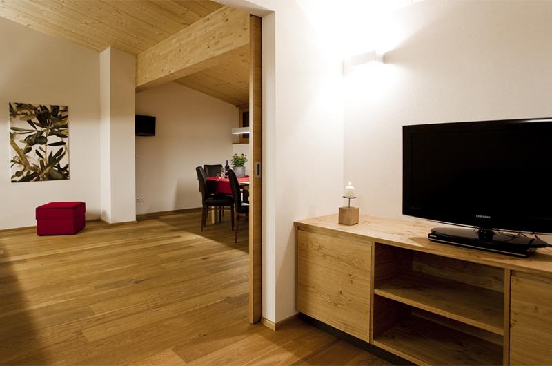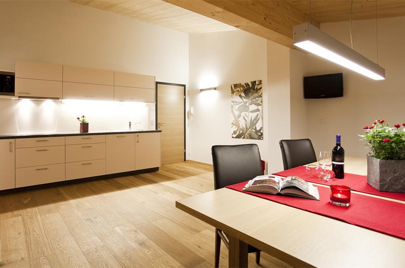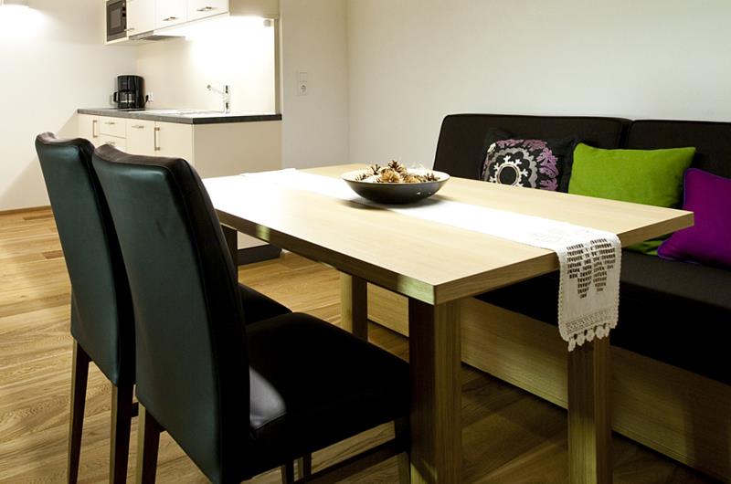 Das Appartement/Suite ist gemütlich und großzügig mit Naturholzmöbel eingerichtet, hat eine Größe von 100 m² und verfügt zusätzlich über einen grosszügigen Balkon.