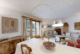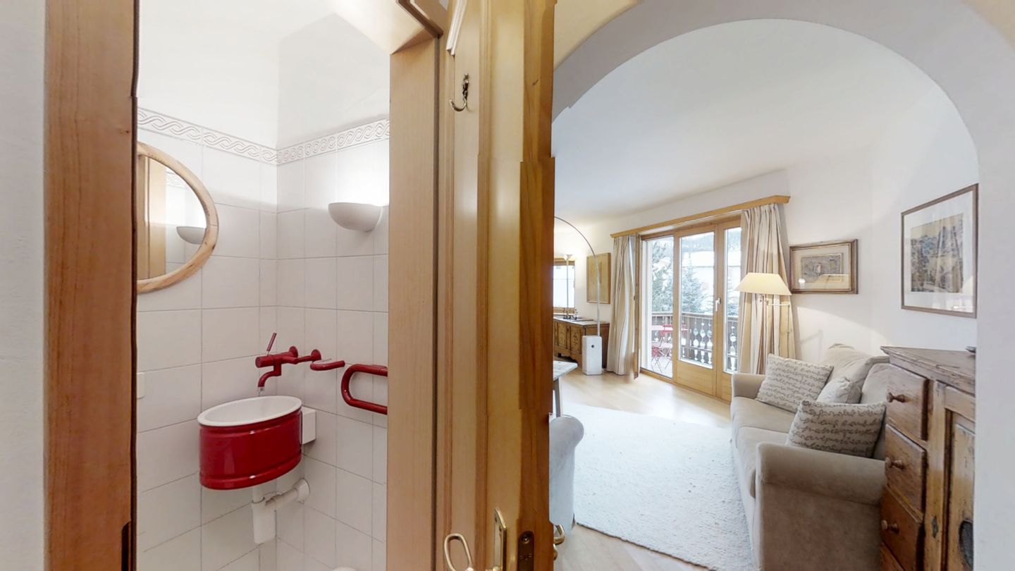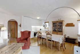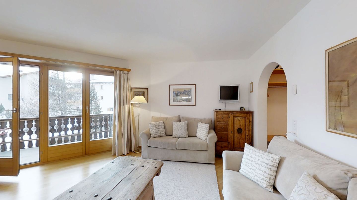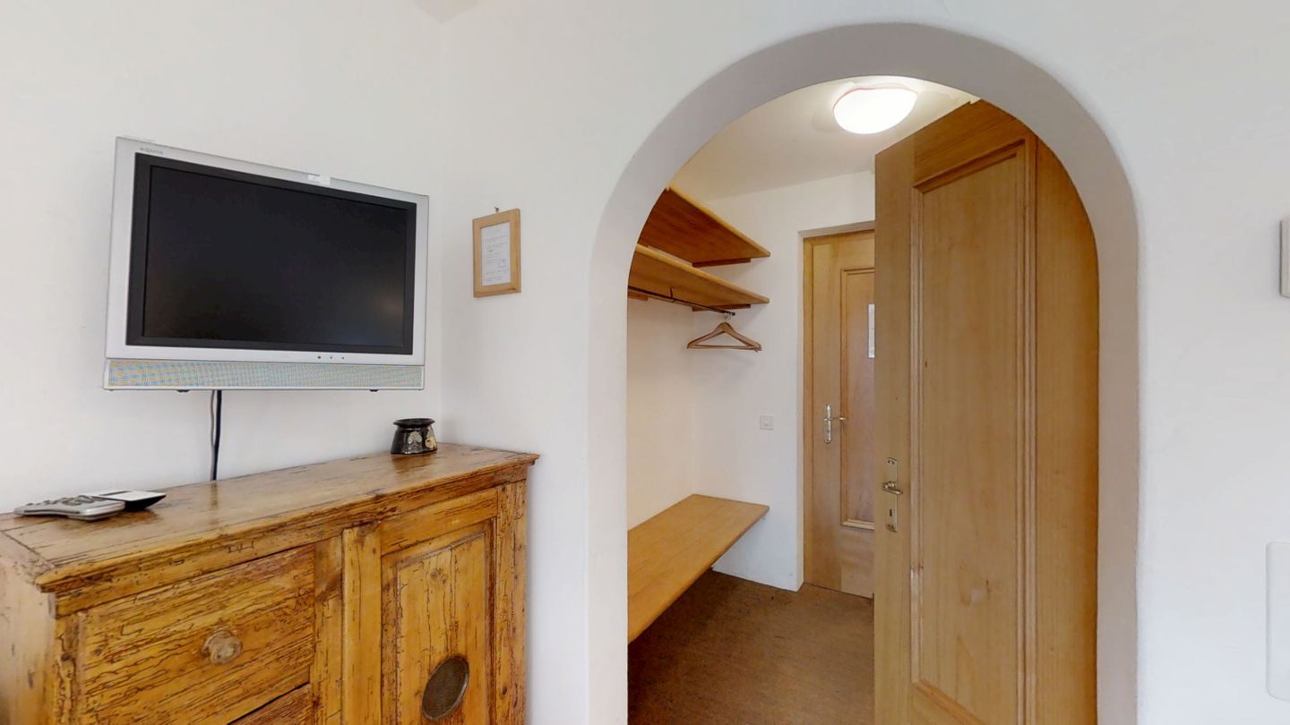 3-Zimmerwohnung im 1. Stock, ca. 77 m2. Entree mit grosser Garderobe. Wohnzimmer mit Essecke. Südwestbalkon mit Bergsicht. Offene Küche mit Backofen, Kaffeemaschine Chicco d'Oro und Geschirrspüler. Ein Doppelzimmer und ein Zimmer mit einem Etagenbett. Badezimmer mit Dusche/WC/Doppellavabo. Separates WC mit Lavabo. Radio, TV und Telefon. Rustikale und sehr komfortable Einrichtung. Garagenplatz. Haustiere sind nicht erlaubt.
