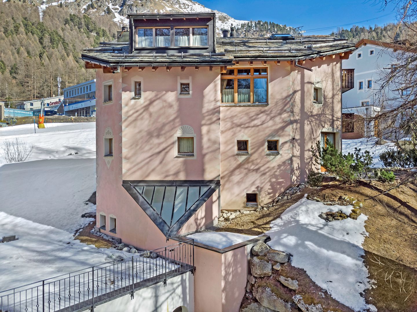 Das Haus befindet sich direkt am Kinderskihang Corvatsch und fussläufig zur Corvatschbahn.