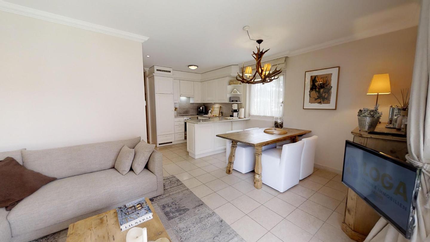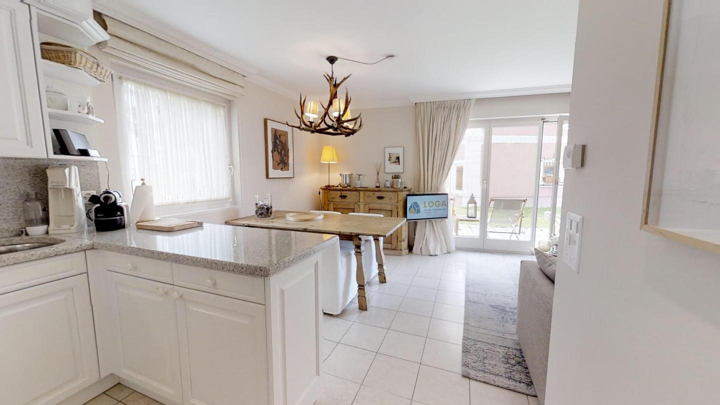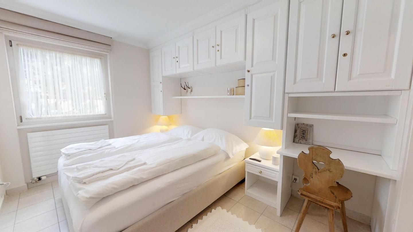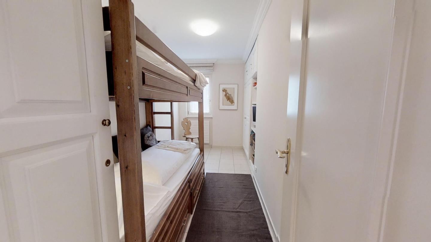 3-Zimmerwohnung im Erdgeschoss mit ca. 75m2. Eingang mit Garderobe. Bad/Bidet/WC/Lavabo/Waschmaschine & Tumbler. Offene Küche mit Kühlschrank, Backofen, Geschirrspülmaschine, 2 Kaffeemaschinen (Fust+Nespresso), Fondue, Racletteofen und Chinoises. Wohn-/ Esszimmer mit Gartensitzplatz. Radio, Fernseher, DVD und Internet. 1 Doppelzimmer (160x200) mit Bad/WC/Doppellavabo, 1 Zimmer mit Etagenbett (90x190). Bügeleisen. 2 Garagenplätze (max 2.15m). Neue komfortable Einrichtung. Waschküche und Skiraum zur Mitbenützung. Haustiere sind nicht erlaubt.