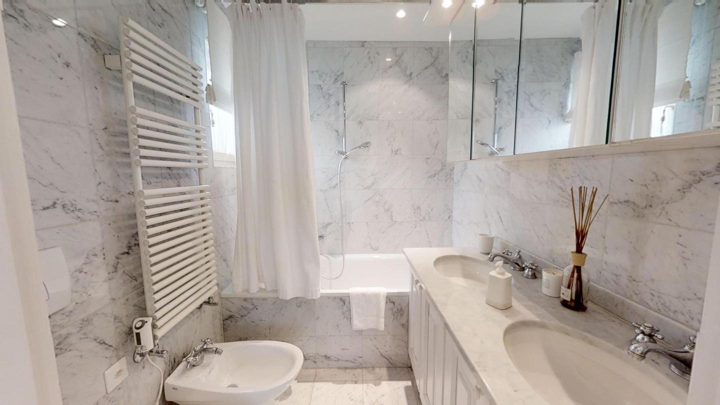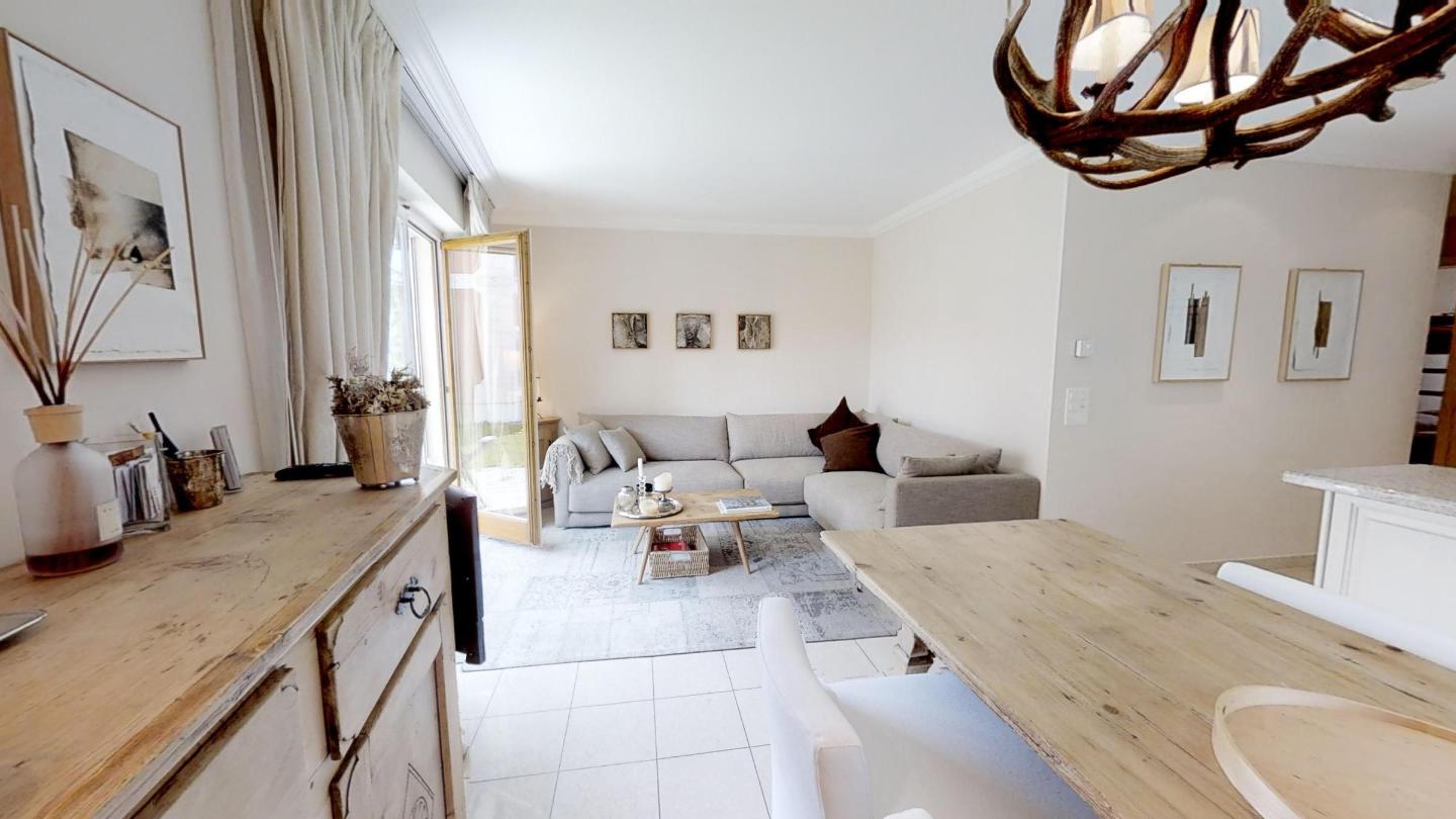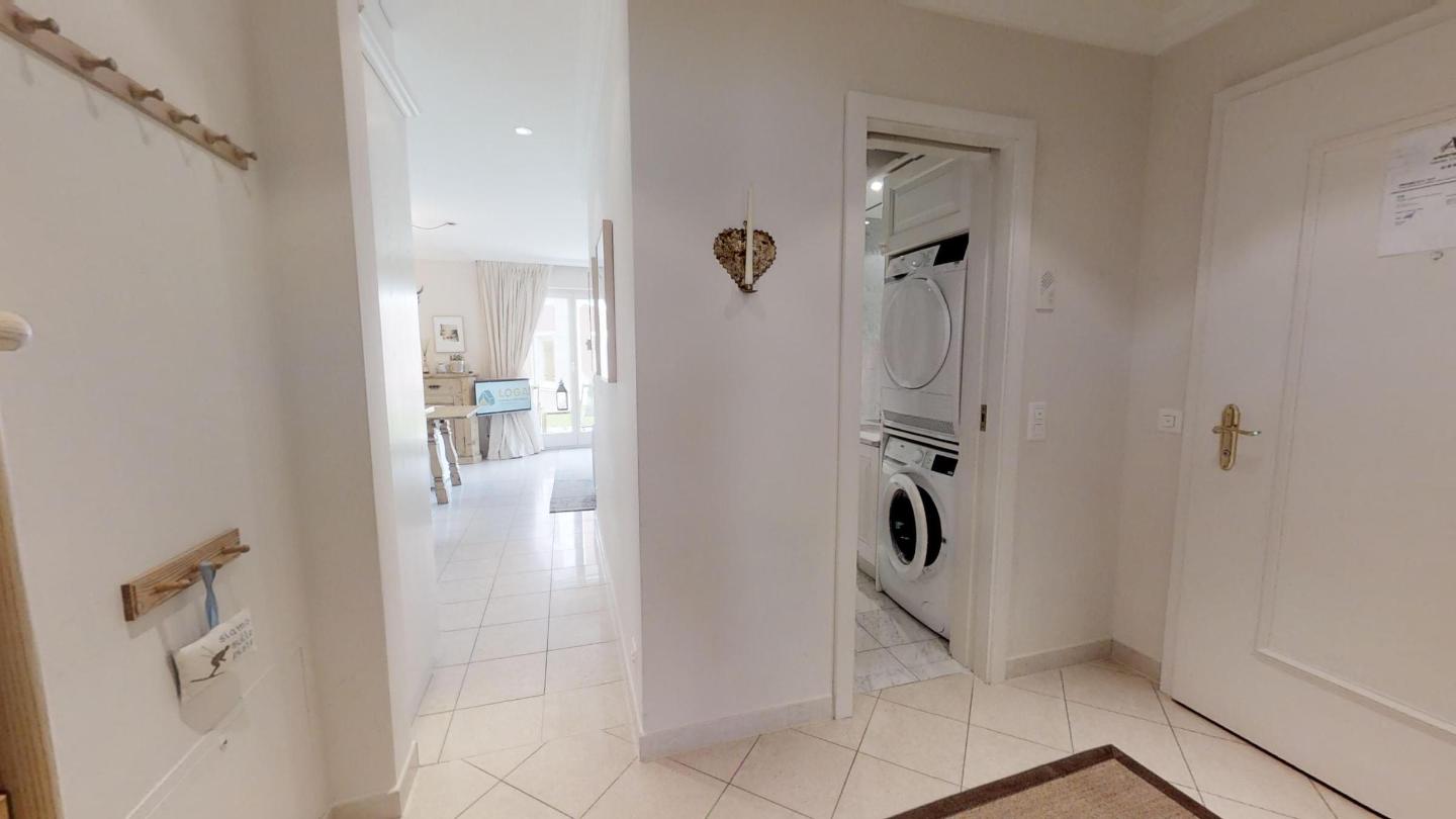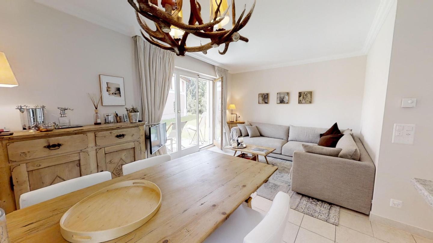 3-Zimmerwohnung im Erdgeschoss mit ca. 75m2. Eingang mit Garderobe. Bad/Bidet/WC/Lavabo/Waschmaschine & Tumbler. Offene Küche mit Kühlschrank, Backofen, Geschirrspülmaschine, 2 Kaffeemaschinen (Fust+Nespresso), Fondue, Racletteofen und Chinoises. Wohn-/ Esszimmer mit Gartensitzplatz. Radio, Fernseher, DVD und Internet. 1 Doppelzimmer (160x200) mit Bad/WC/Doppellavabo, 1 Zimmer mit Etagenbett (90x190). Bügeleisen. 2 Garagenplätze (max 2.15m). Neue komfortable Einrichtung. Waschküche und Skiraum zur Mitbenützung. Haustiere sind nicht erlaubt.