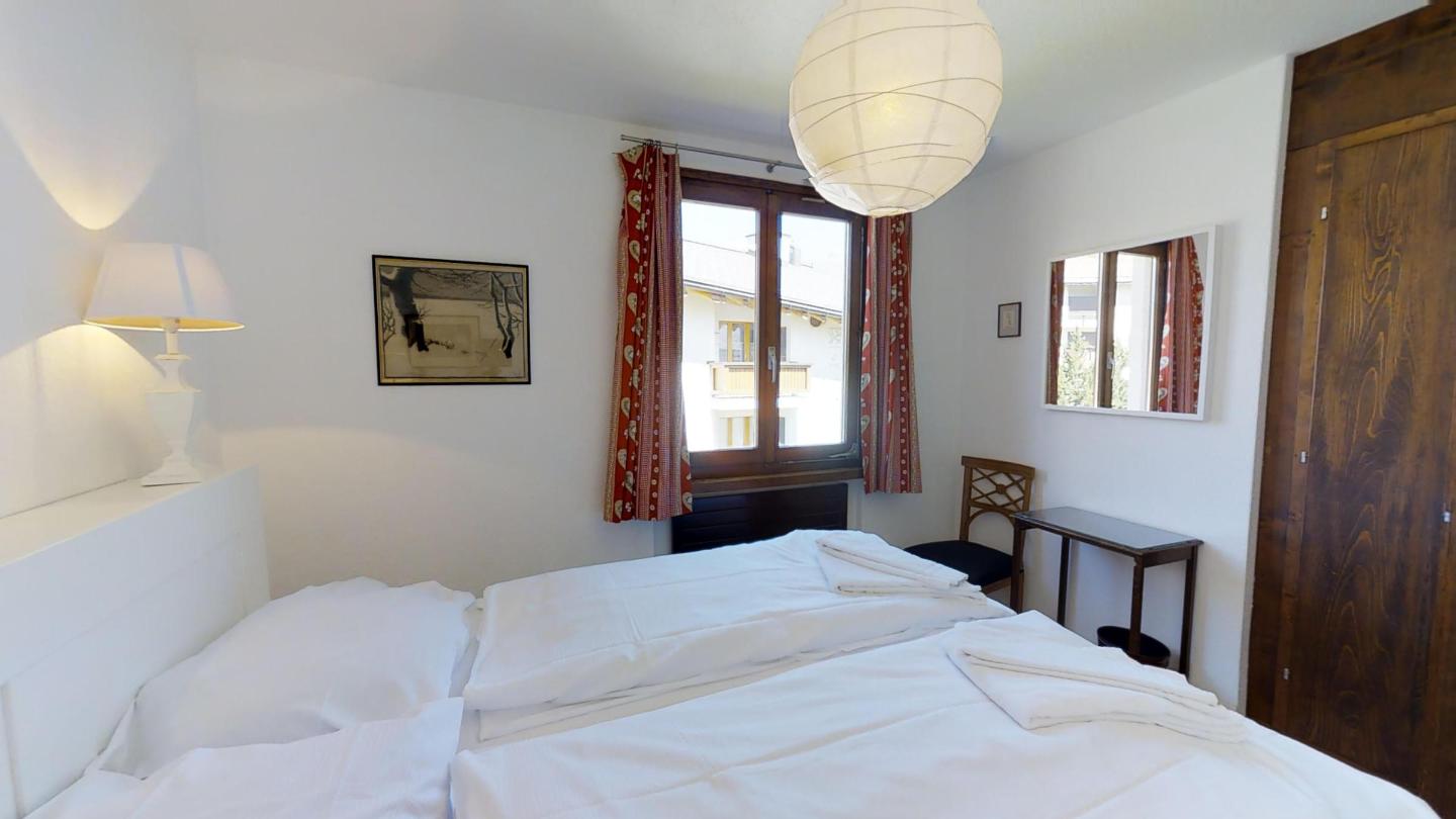 Teil renovierte 4½-Zimmerwohnung im zweiten Stock, ca. 120m2. Eingang mit Garderobe. Wohn-/ Esszimmer mit Kamin und Südbalkon mit Bergsicht. Fernsehnische. Radio/Internet und Telefon. Neue separate Küche mit Backofen, Kühlschrank, Geschirrspülmaschine, Kaffeemaschine (De Longhi u. Chicco d'Oro), Toaster und Fondue. Renovierte Zimmer. Ein Doppelzimmer (2x90x200) mit Bad Wanne/WC/Doppellavabo/Bidet. Ein Zimmer mit Kajüttenbett (90x200). Dusche/WC/Lavabo. Ein Doppelzimmer (2x80x200). Gäste-WC. Bügeleisen und Bügelbrett. Komfortable Einrichtung. Waschküche und Skiraum zur gemeinsamen Benützung. Haustiere sind nicht erlaubt.