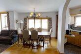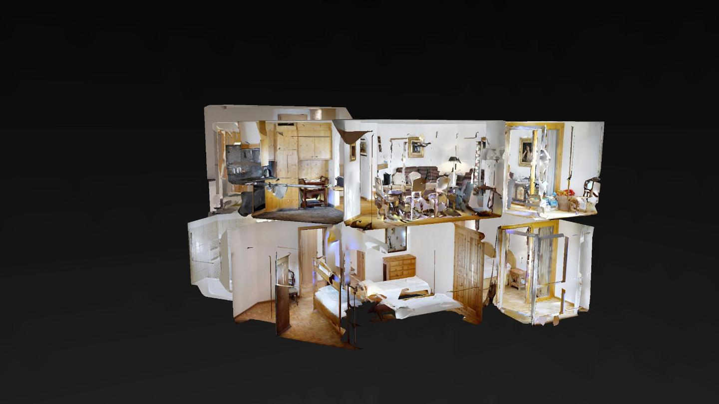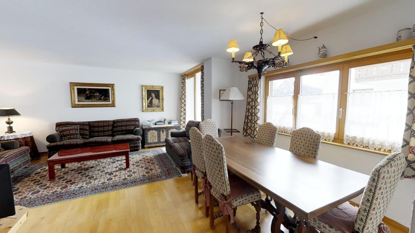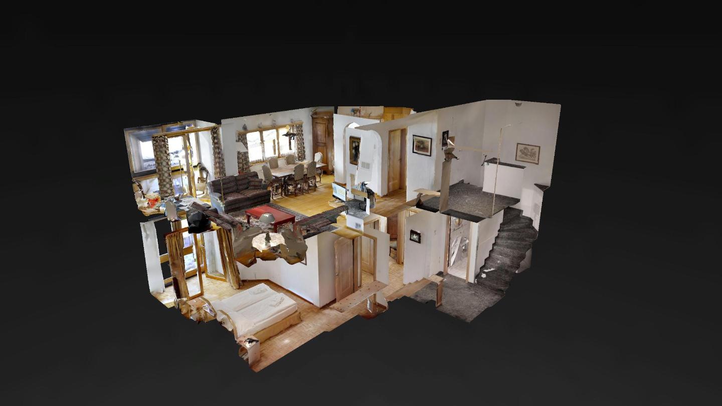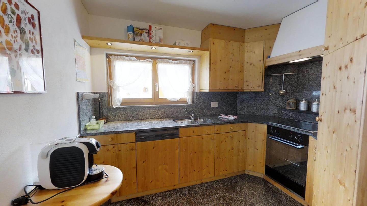 4½-Zimmerwohnung auf 2 Etagen mit circa 120m2. Vom Haupteingang in der 1. Etage kommend: Wohn-/ Esszimmer und abgegrenzter halb-offener Küche. Wohnzimmer mit grossem Kamin und Zugang zum kleinen Wintergarten mit herrlichem Blick auf den Silvaplanersee und den Corvatsch. TV und WLAN-Anschluss. Esstisch für 6 Personen. Küche mit Backofen und Geschirrspüler, grossem Kühlschrank mit Gefrierfach. Chicco d`Oro Kaffeemaschine.