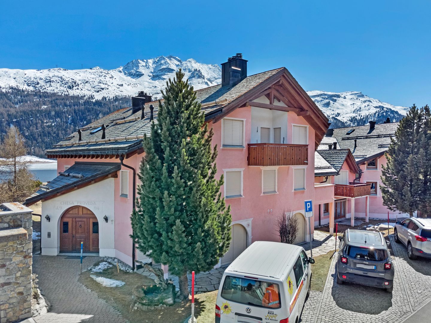 Die Chesa Prüveda (Baujahr 1994, Engadinerstil) befindet sich am Rande des Dorfkerns von Silvaplana. Langlaufloipen führen direkt vom Haus weg. Wanderwege gibt es in unmittelbarer Umgebung. Das Sportzentrum Mulets ist ca. 5 Gehminuten entfernt, wo Sportarten wie Curling, Schlittschuhlaufen, Eishockey, Tennis, Kraft- und Ausdauertraining, Segeln und Surfen ausgeübt werden können. Im Sportzentrum gibt es ein nettes Restaurant und Camping Möglichkeiten. Der Corvatsch, Skigebiet im Winter und Ausgangspunkt vieler Wanderungen im Sommer, befindet sich auf der rechten Seeseite im Dorfteil Surlej, ca. 700m entfernt. Der Sportbus fährt im Winter jede halbe Stunde in alle Richtungen. Viele andere Winter- und Sommersportarten können im 5 km entfernten St. Moritz ausgeübt werden.