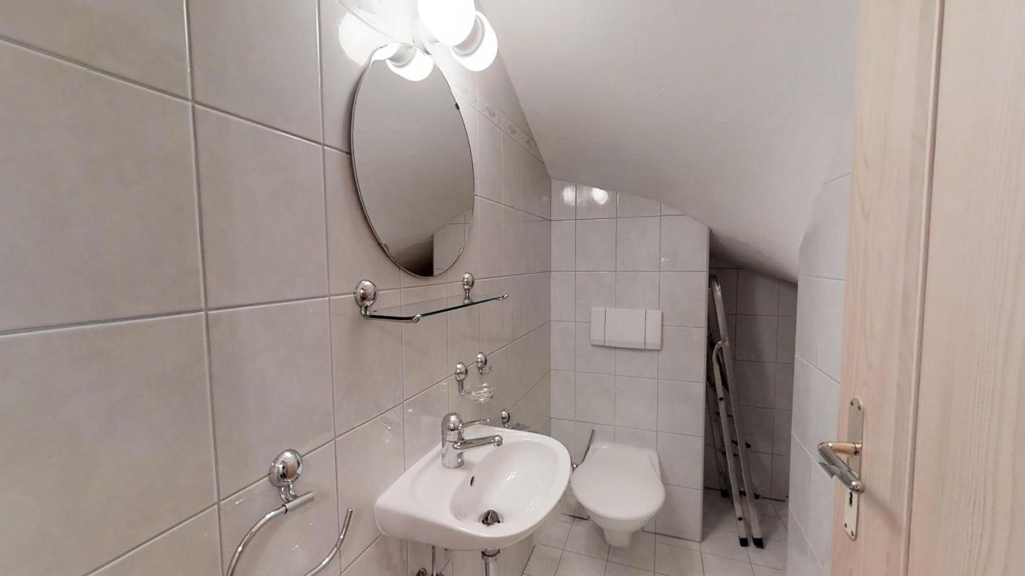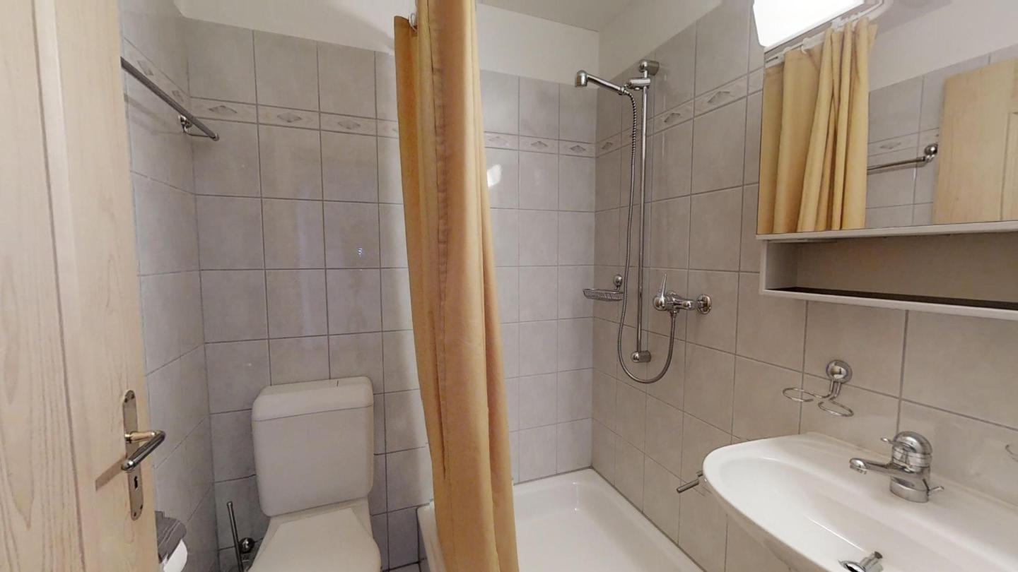 Kleines Badezimmer mit Dusche/WC/Lavabo.