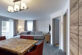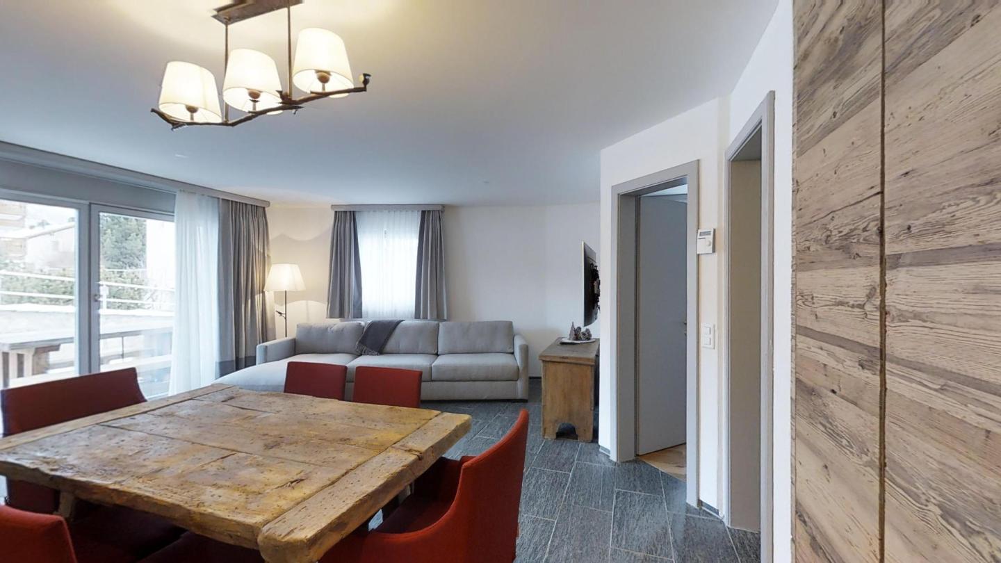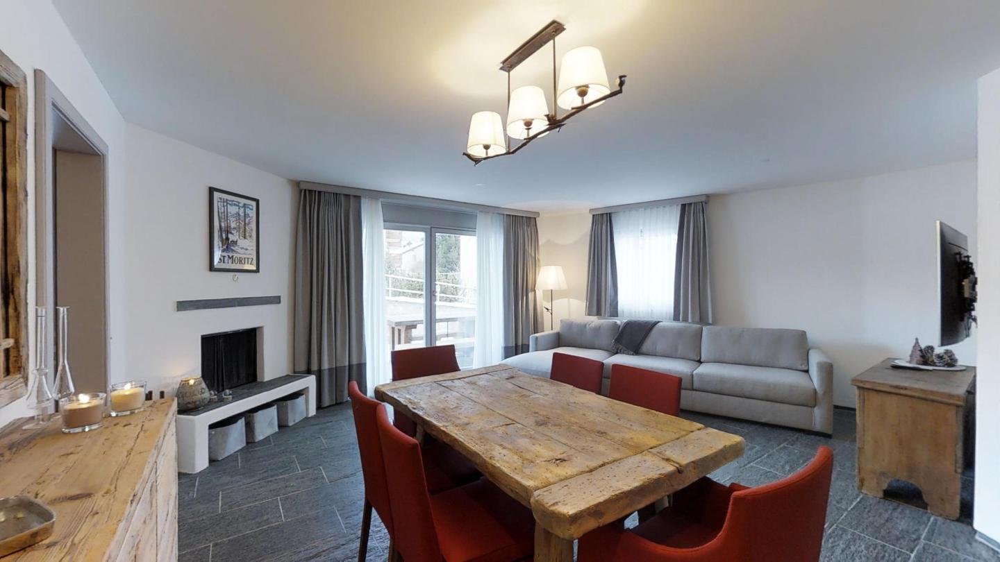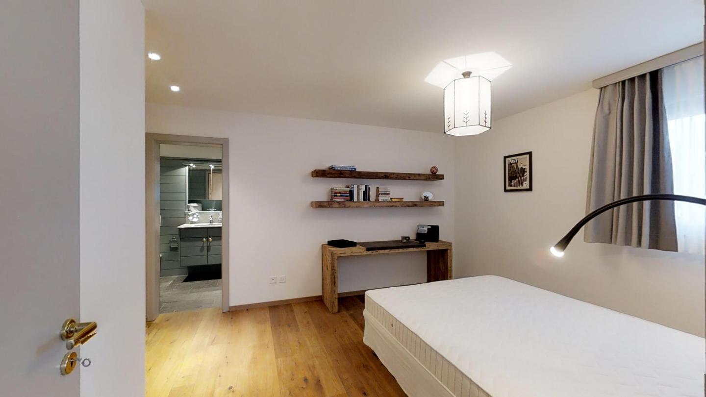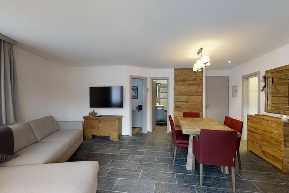 3-Zimmerwohnung im EG, ca. 90 m2. Entree mit Garderobe. Wohn-/Esszimmer mit Gartensitzplatz. Radio, Internet und TV. Küche mit Backofen, Kühlschrank, Geschirrspüler und Kaffeemaschine (Chicco d'Oro). Ein Doppelschlafzimmer Bett (160 cm). Ein Bad/WC/Bidet und Lavabo. Ein Zimmer mit Schlafsofa. Dusche/WC/Bidet und Lavabo. Ein Garagenplatz. Eigener Waschraum (Waschmaschine und Tumbler) mit Bügelgelegenheit. Zur Mitbenützung im Haus: Spielzimmer mit Tischtennis und Skiraum. Haustiere sind erlaubt. Anreise Samstag