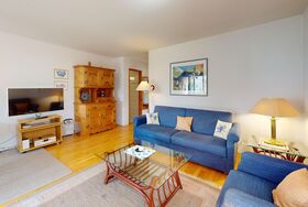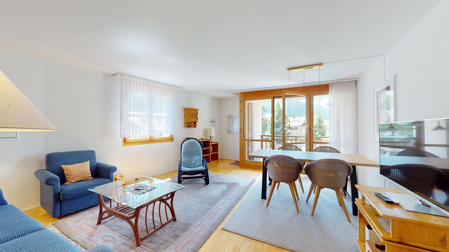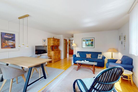 Sonnige 2½-Zimmerwohnung im 1. Stock, 75 m2, an ruhiger Südlage, Wohn-/ Esszimmer, Balkon, Telefon mit Zähler, Radio und TV, Offene Küche mit Geschirrspüler und Backofen, Bad, WC und Lavabo. Doppelschlafzimmer, zusätzlich Schlafsofa für 2 Personen im Wohnzimmer, Neue, komfortable Einrichtung, Garagenplatz (Garagentorhöhe 195 cm), Waschküche (Benützung max. 1 x pro Woche) und Skiraum zur Mitbenützung. Haustiere sind nicht erlaubt.