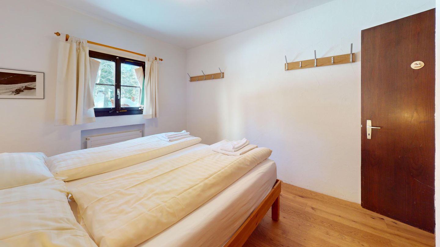 3-Zimmerwohnung im Erdgeschoss, Eingang mit Garderobe, Wohnzimmer mit Essecke und Ausgang auf den Gartensitzplatz. Geschlossene voll ausgestattete Küche mit Chicco d'Oro Kaffeemaschine. Doppelzimmer mit Einbauschrank. Zimmer mit 2 Betten. Badezimmer mit Waschbecken/Dusche/WC/Lavabo. Für den Gartensitzplatz gibt es Gartenmöbel. Der Kamin funktioniert nicht! Garagenplatz (Höhe 1.90 m)