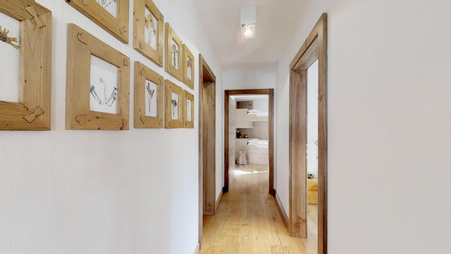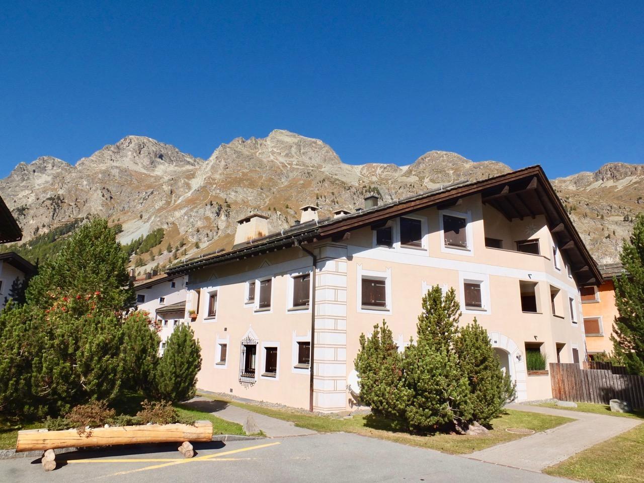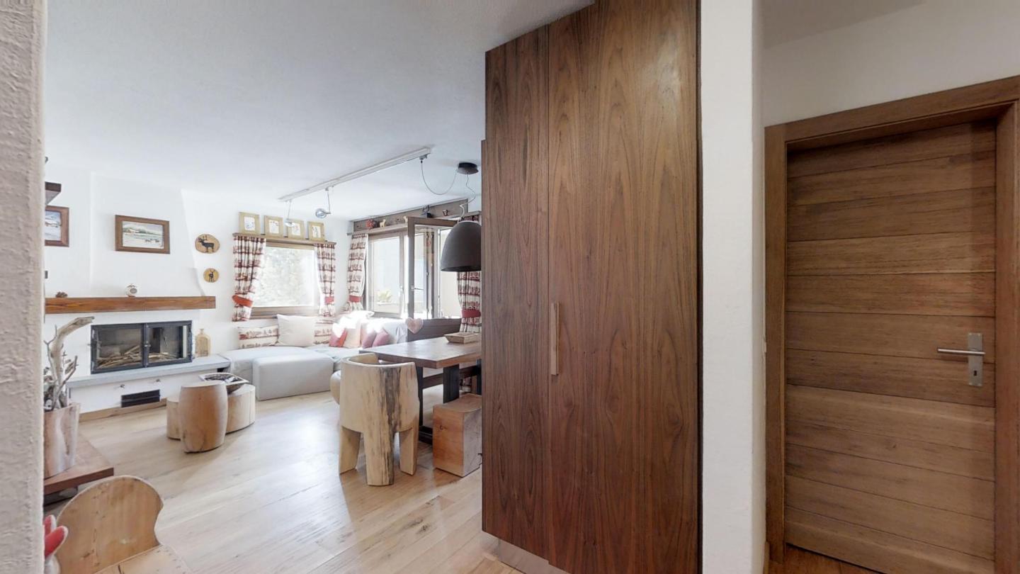 Geschmackvolle renovierte 3-Zimmerwohnung im 1. Stock, ca. 85 m2, an sehr ruhiger Lage. Ganze Wohnung mit Holzboden. Entrée mit Garderobe. Offene Küche mit Backofen, Chiccho d'Oro Kaffeemaschine und Geschirrspülmaschine. Wohn-/ Esszimmer mit Cheminée und Balkon, TV/Sat sowie DVD/VHS. Dusche/WC/Lavabo. 1 Doppelschlafzimmer. 1 Schlafzimmer mit 2 Etagenbetten für 4 Personen. Bad/WC/Lavabo/Bidet. Garagenplatz Nr. 121. Ski- und Veloraum, Waschmaschine und Trockner zur gemeinsamen Nutzung. Haustiere erlaubt.