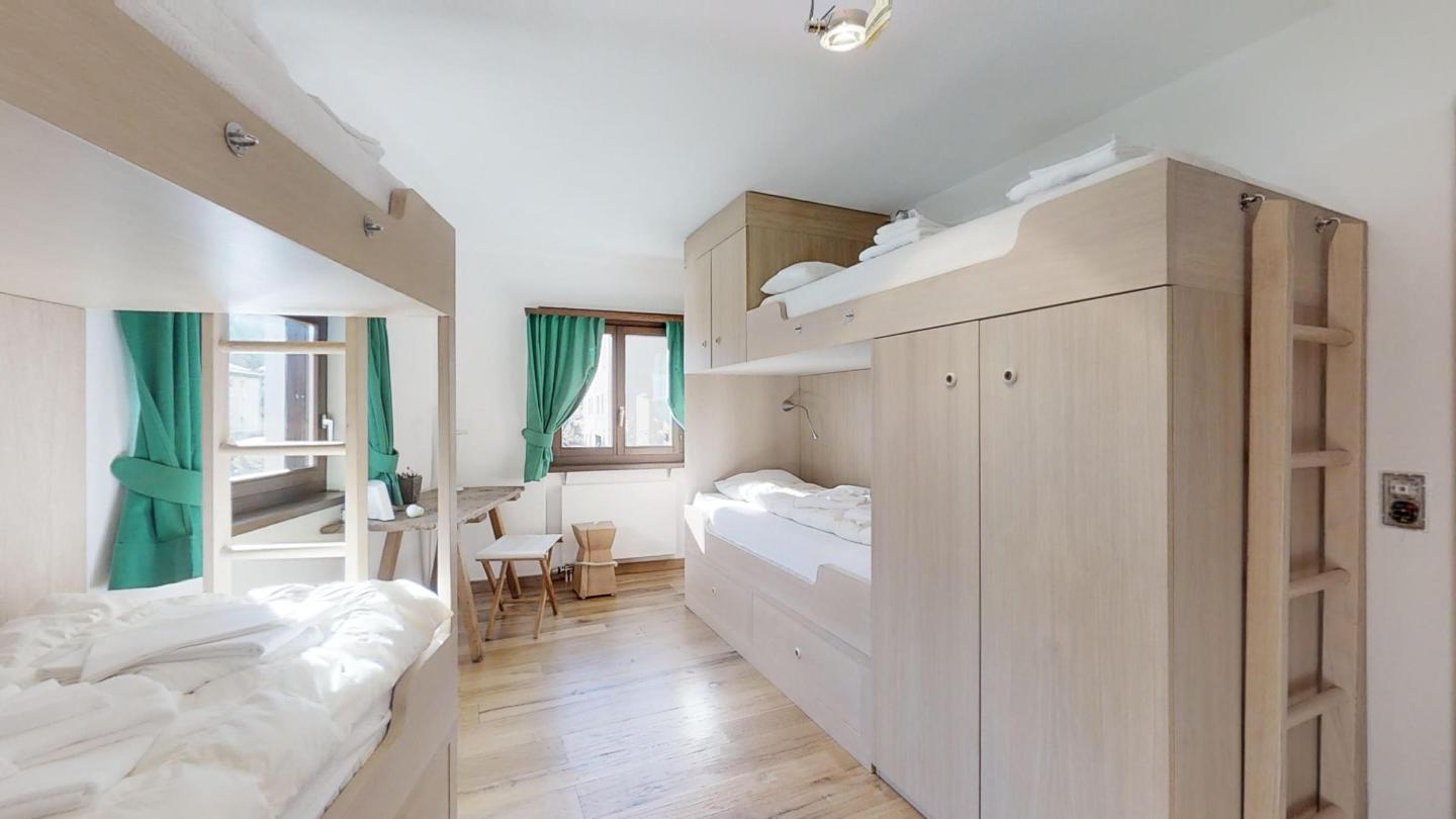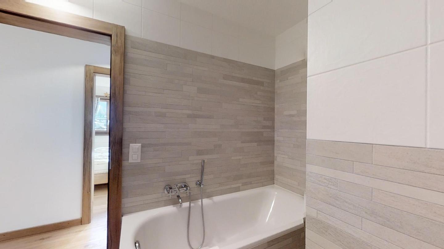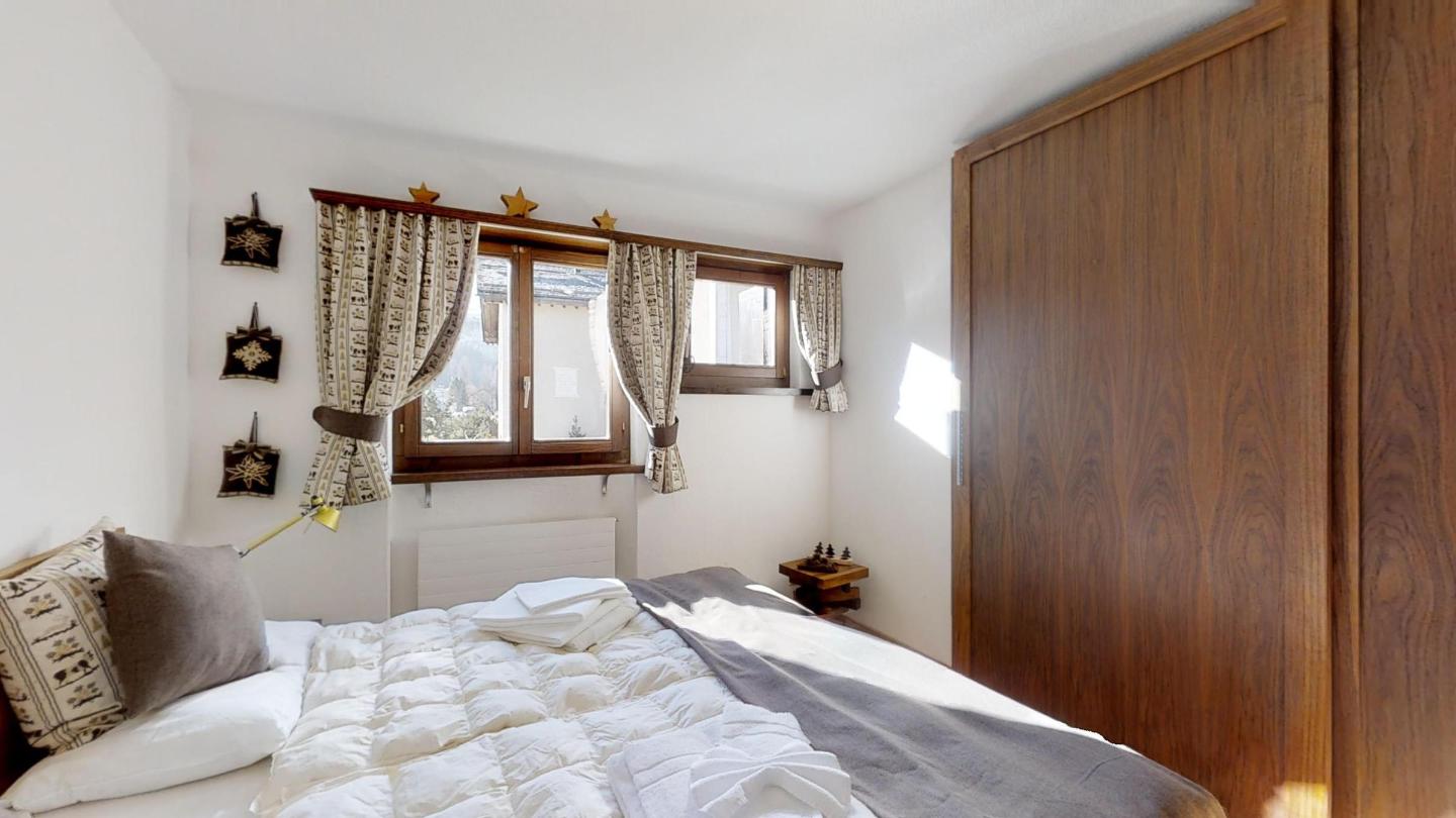 Geschmackvolle renovierte 3-Zimmerwohnung im 1. Stock, ca. 85 m2, an sehr ruhiger Lage. Ganze Wohnung mit Holzboden. Entrée mit Garderobe. Offene Küche mit Backofen, Chiccho d'Oro Kaffeemaschine und Geschirrspülmaschine. Wohn-/ Esszimmer mit Cheminée und Balkon, TV/Sat sowie DVD/VHS. Dusche/WC/Lavabo. 1 Doppelschlafzimmer. 1 Schlafzimmer mit 2 Etagenbetten für 4 Personen. Bad/WC/Lavabo/Bidet. Garagenplatz Nr. 121. Ski- und Veloraum, Waschmaschine und Trockner zur gemeinsamen Nutzung. Haustiere erlaubt.